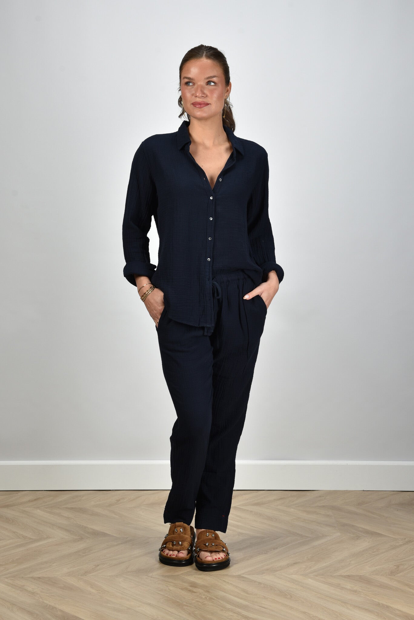 Zie hier de Xirena broek Jordyn in North Star blauw. Deze stijlvolle broek is vervaardigd uit 100% katoen en biedt een normale pasvorm, ideaal voor dagelijks gebruik. Lise draagt maat 38/M/28 bij een lengte van 1,73m. Koud wassen aanbevolen. Artikelnummer: X7CHG006.