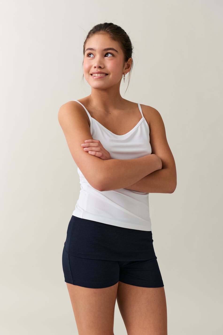 Korte yogashort van zachte jersey met omvouwbare tailleband. De short is blauw en heeft lage taille.