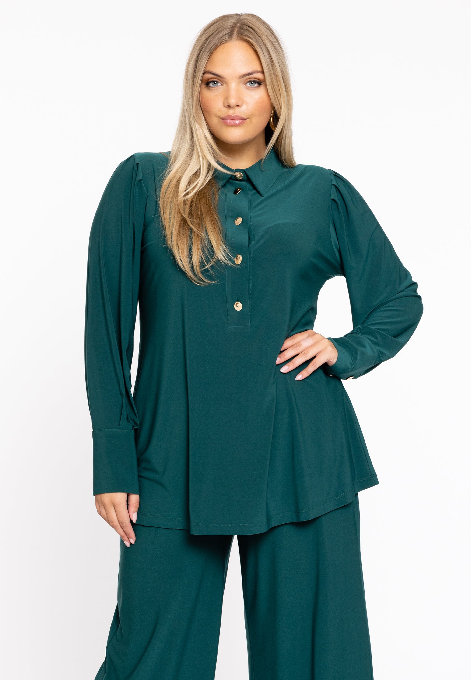 Home » Dames » Kleding » Grote maten » Blouses & tunieken » Yoek Blouse flare met pofmouwen | Dark Green | Maat 46/48