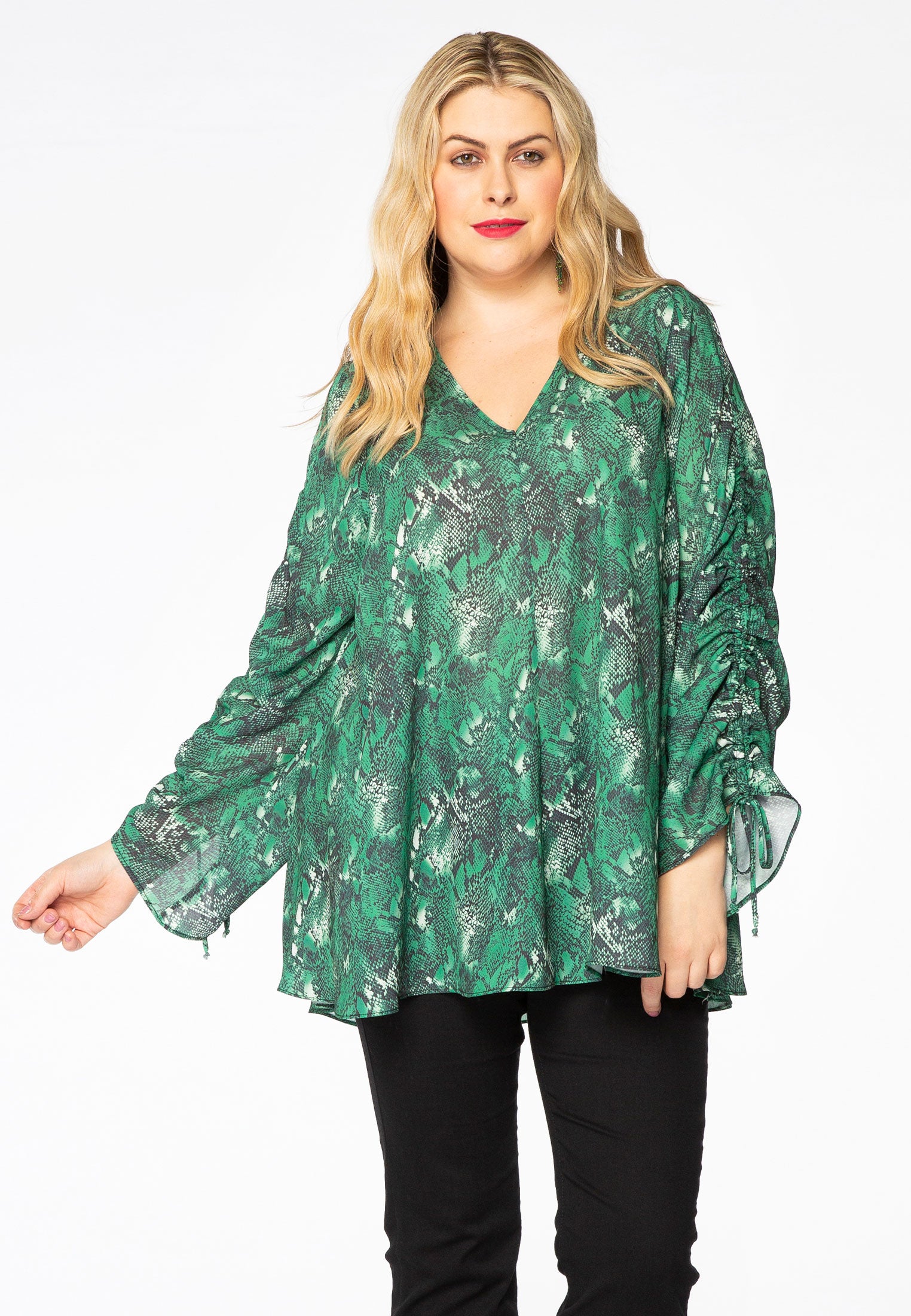 Home » Dames » Kleding » Grote maten » Blouses & tunieken » Yoek Blouse met gerimpelde mouw | Groen | Maat 46/48