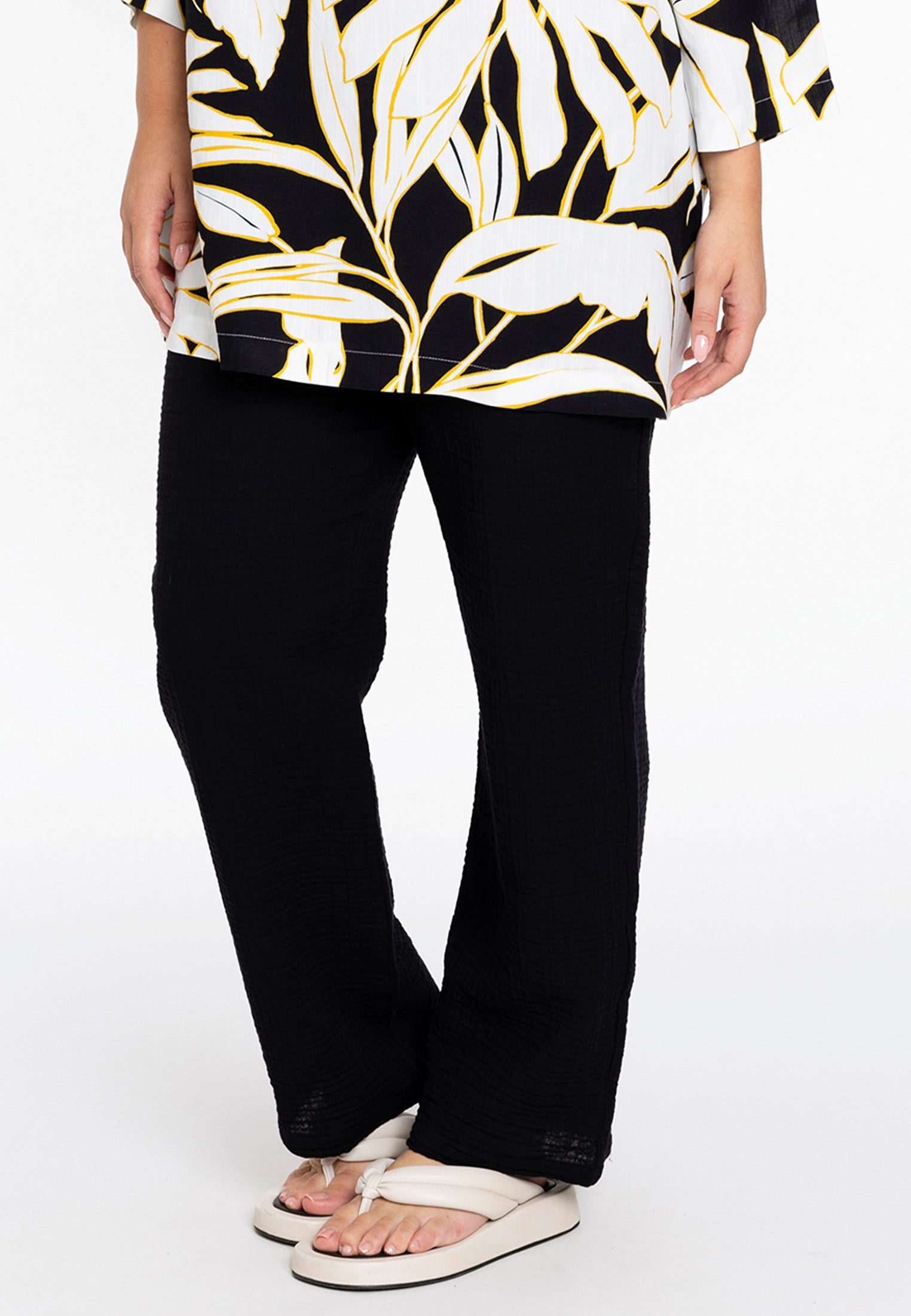 Of je nu de stad verkent of geniet van een casual uitje, deze broek combineert moeiteloos modieus design met draaggemak. Deze broek is gemaakt van 100% katoen en heeft een trendy bubbeltextuur die een vleugje uniekheid aan je look toevoegt. De elastische tailleband zorgt voor een comfortabele pasvorm, waardoor hij perfect is voor de warme dagen.