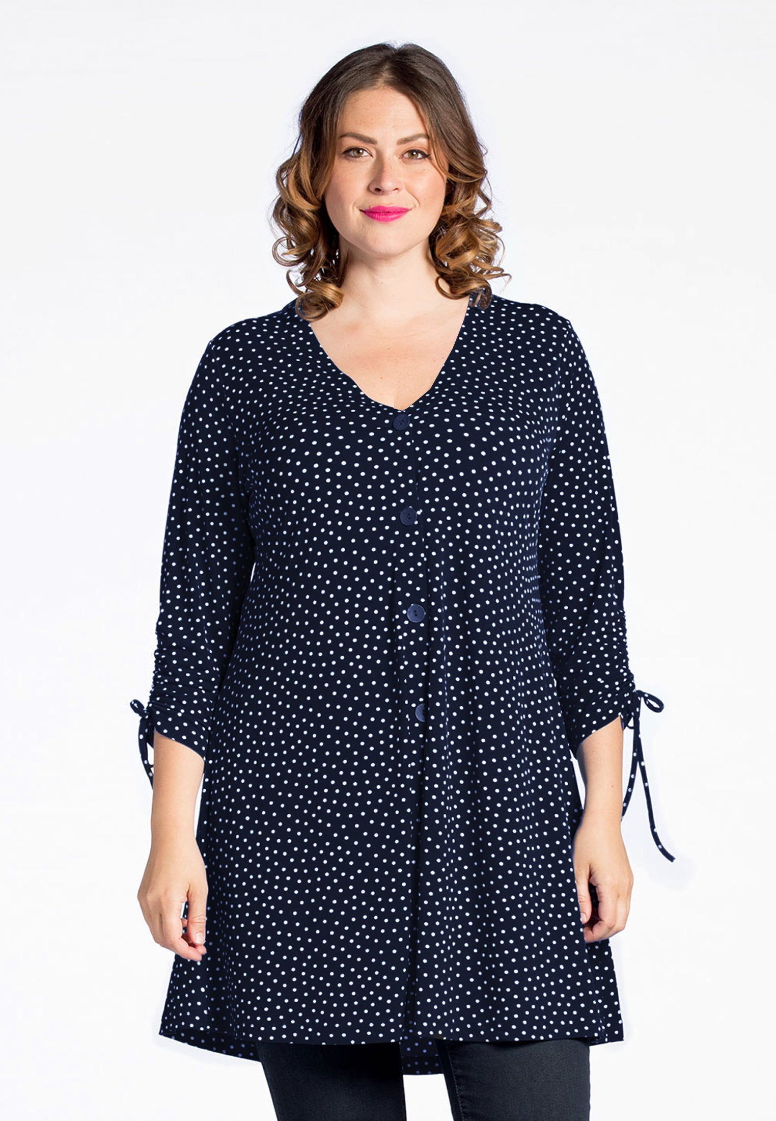 Home » Dames » Kleding » Grote maten » Truien & sweaters » Yoek Cardigan wide bot string DOTS | Blauw | Maat S