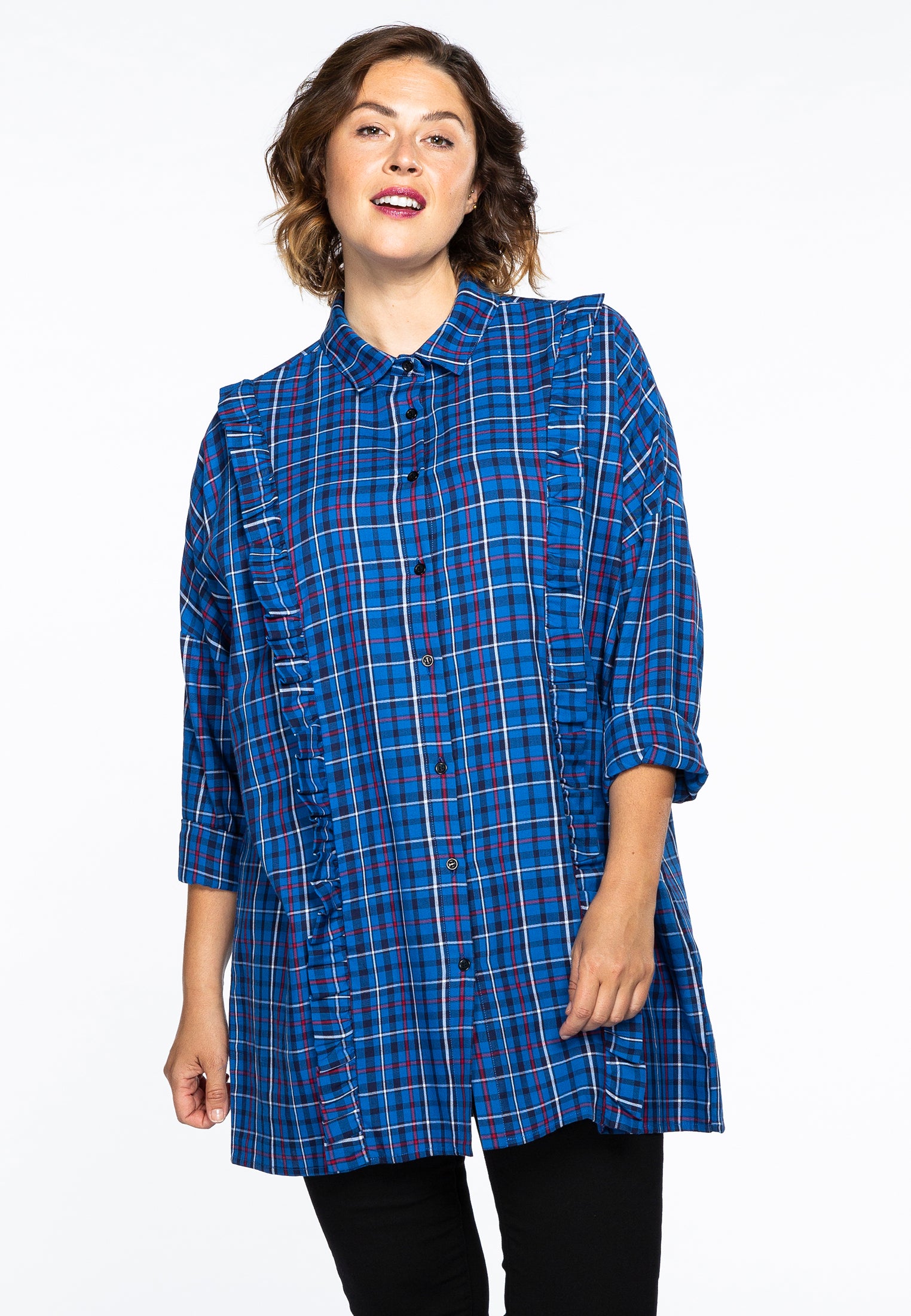 Home » Dames » Kleding » Grote maten » Blouses & tunieken » Yoek Geruite blouse met ruches | Blauw | Maat 42/44