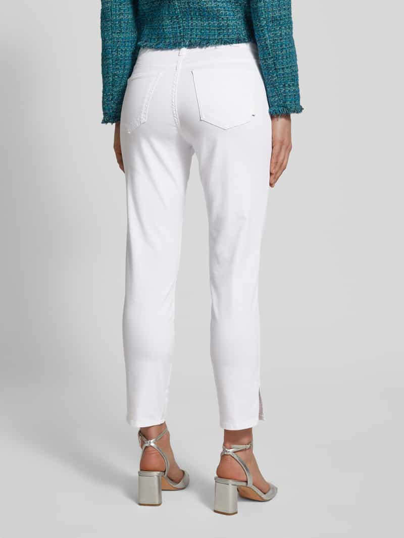Een trendy 7/8 jeans met een reguliere ritssluiting. Onder aan de broekspijpen zitten ritsjes voor een sportieve touch.