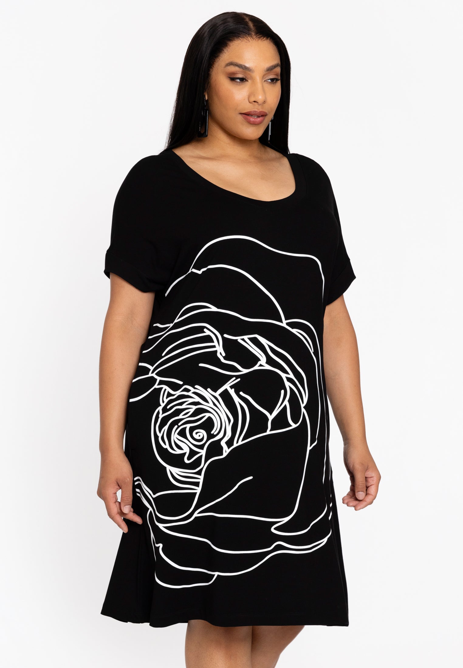 Kiss from a rose! De abstracte rozenprint op deze A-lijn jurk zorgt voor een speels effect. De ademende viscosemix zorgt voor een heerlijk draagcomfort.