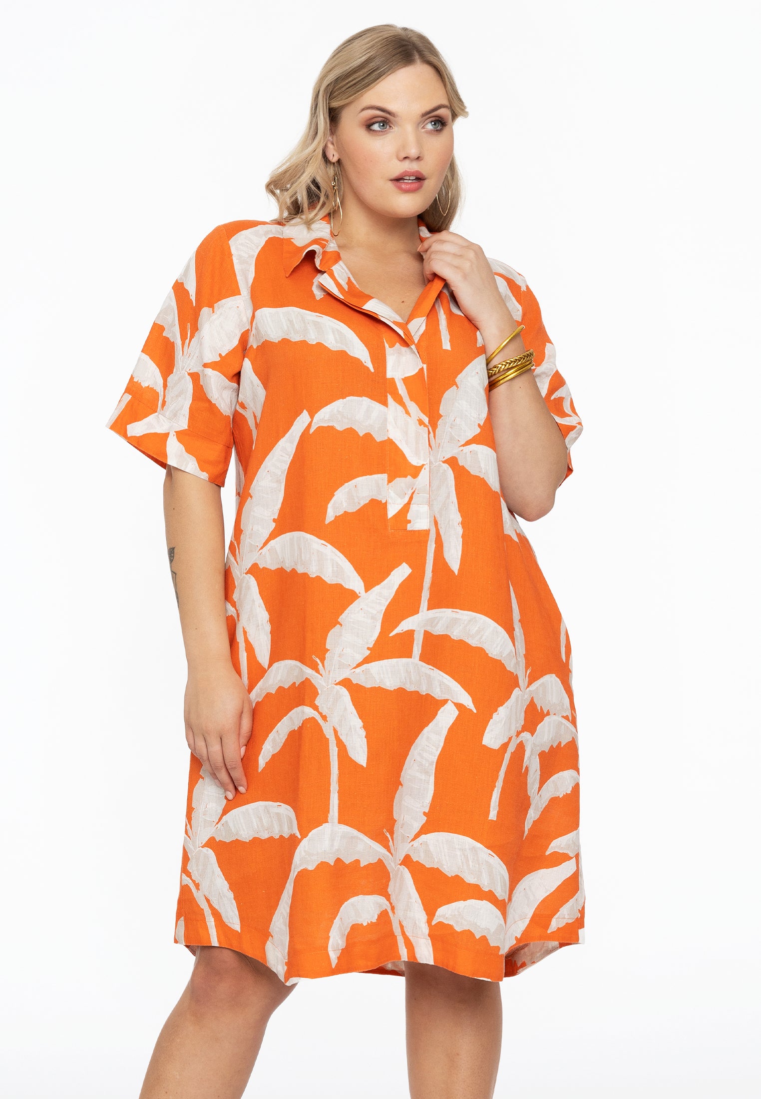 Yoek Jurk met kraag PALM TREE | Oranje | Maat 38/40