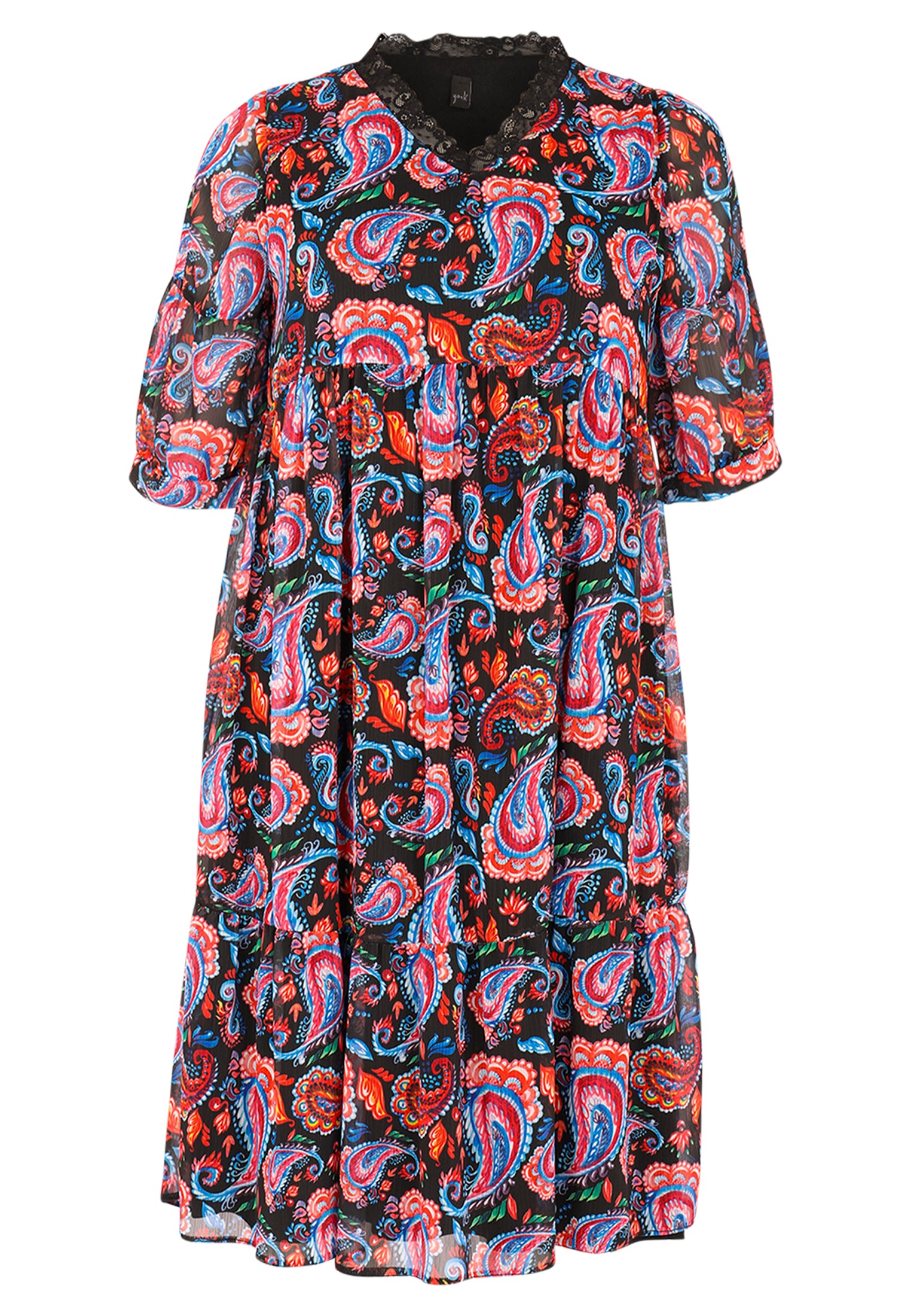 Yoek Jurk met pofmouw PAISLEY | Zwart | Maat 58/60