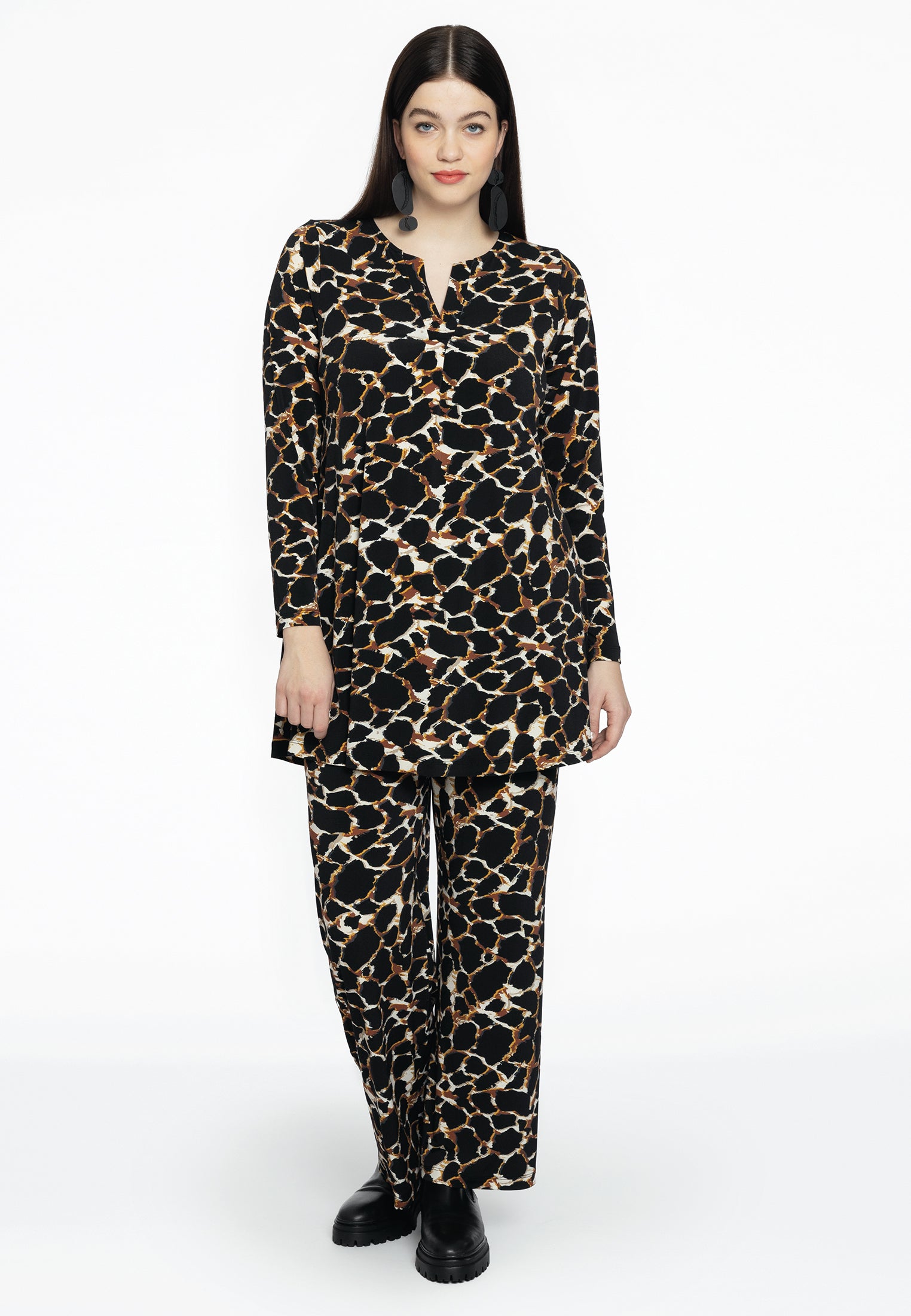 Het is tijd om een andere dierenprint te verwelkomen na alle leopards. De giraffe maakt zijn trendy entree in onze PORTRAITS wintercollectie. Deze geprinte broek heeft comfortabele wijde pijpen en een elastische tailleband. Kies voor een volledige co-ord look in print of style de broek met effen zwart.