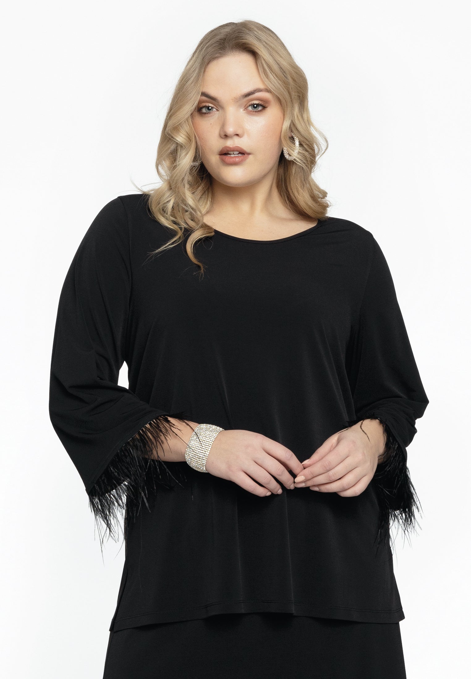Home » Dames » Kleding » Grote maten » Tops & shirts » Yoek Shirt A-lijn met veren | Zwart | Maat 38/40