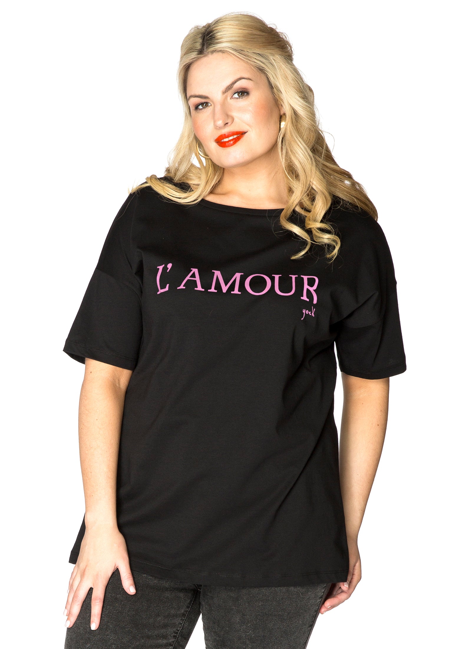 Home » Dames » Kleding » Grote maten » Tops & shirts » Yoek Shirt wide short sl L'amour | Zwart | Maat L