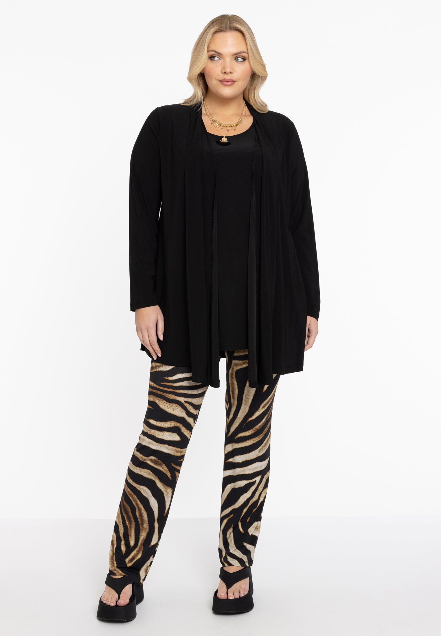 Ervaar comfort en stijl met onze broek gemaakt van dolce-materiaal. De elastische tailleband en rechte pasvorm zorgen voor een comfortabele en flatterende pasvorm, terwijl de tijgerprint een vleugje wilde elegantie toevoegt aan je zomerse look. Omarm de perfecte combinatie van comfort en mode met deze veelzijdige broek.