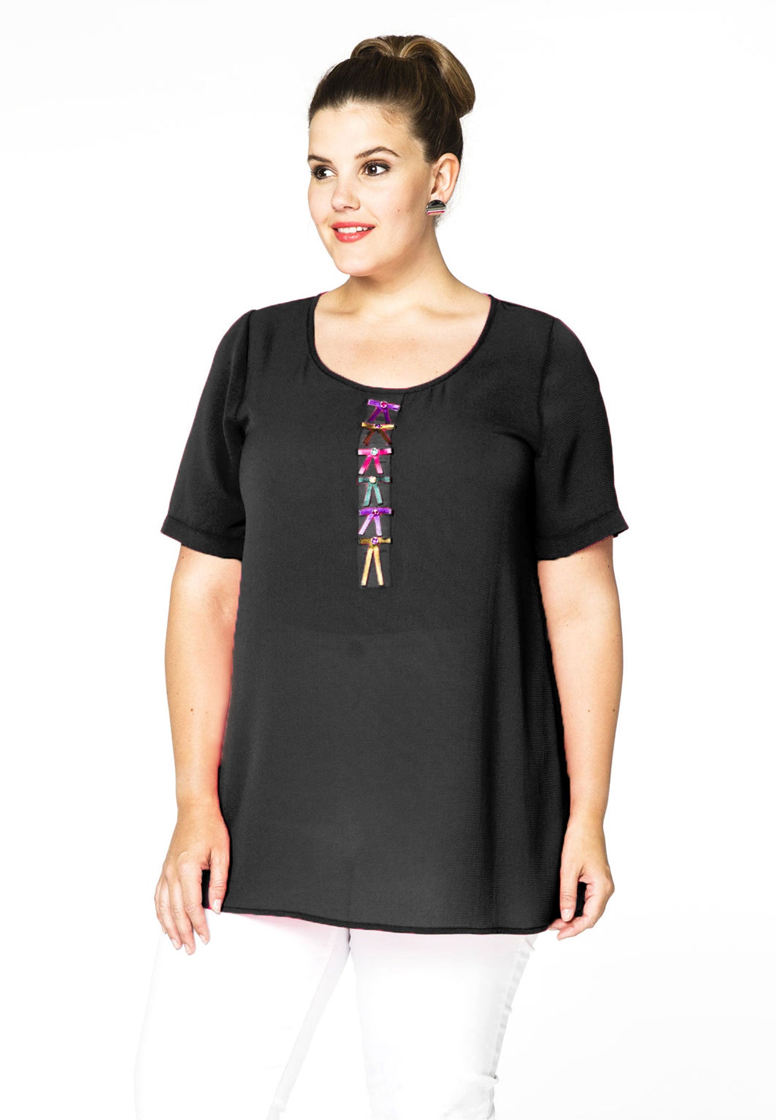 Home » Dames » Kleding » Grote maten » Blouses & tunieken » Yoek Tunic little bows | Zwart | Maat 38/40