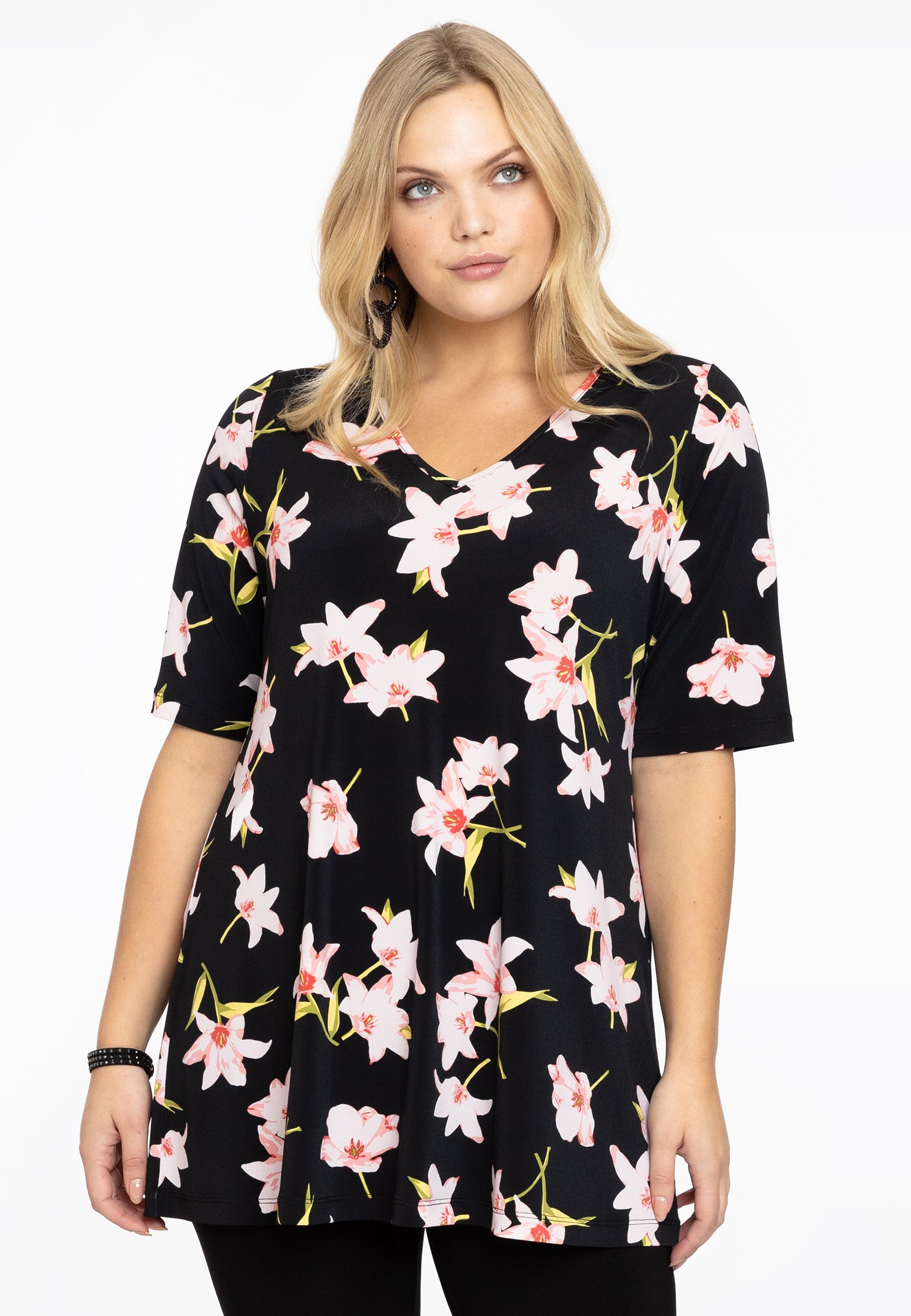 Home » Dames » Kleding » Grote maten » Blouses & tunieken » Yoek Tuniek flare HIBISCUS | Zwart | Maat 42/44
