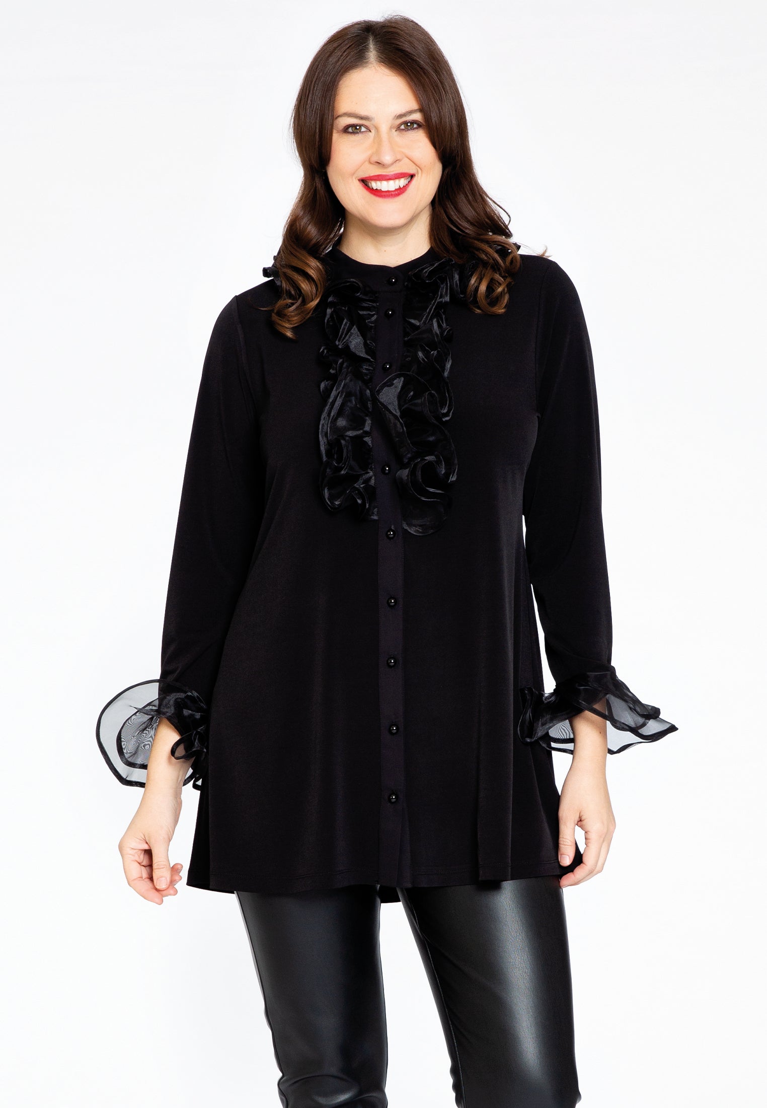 Home » Dames » Kleding » Grote maten » Blouses & tunieken » Yoek Tuniek flare met ruches | Zwart | Maat 38/40
