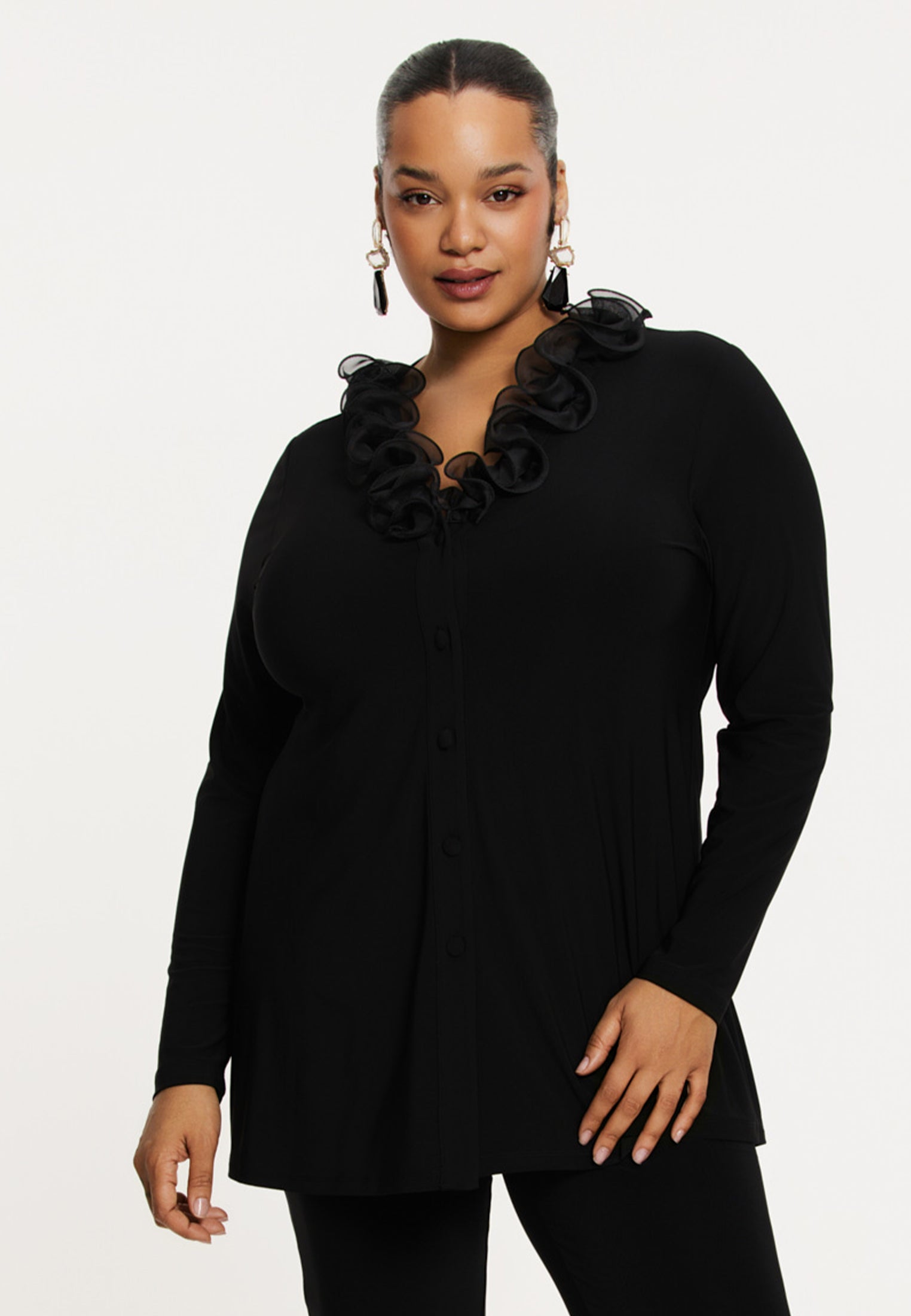 Yoek Tuniek flare met ruches | Zwart | Maat 38/40