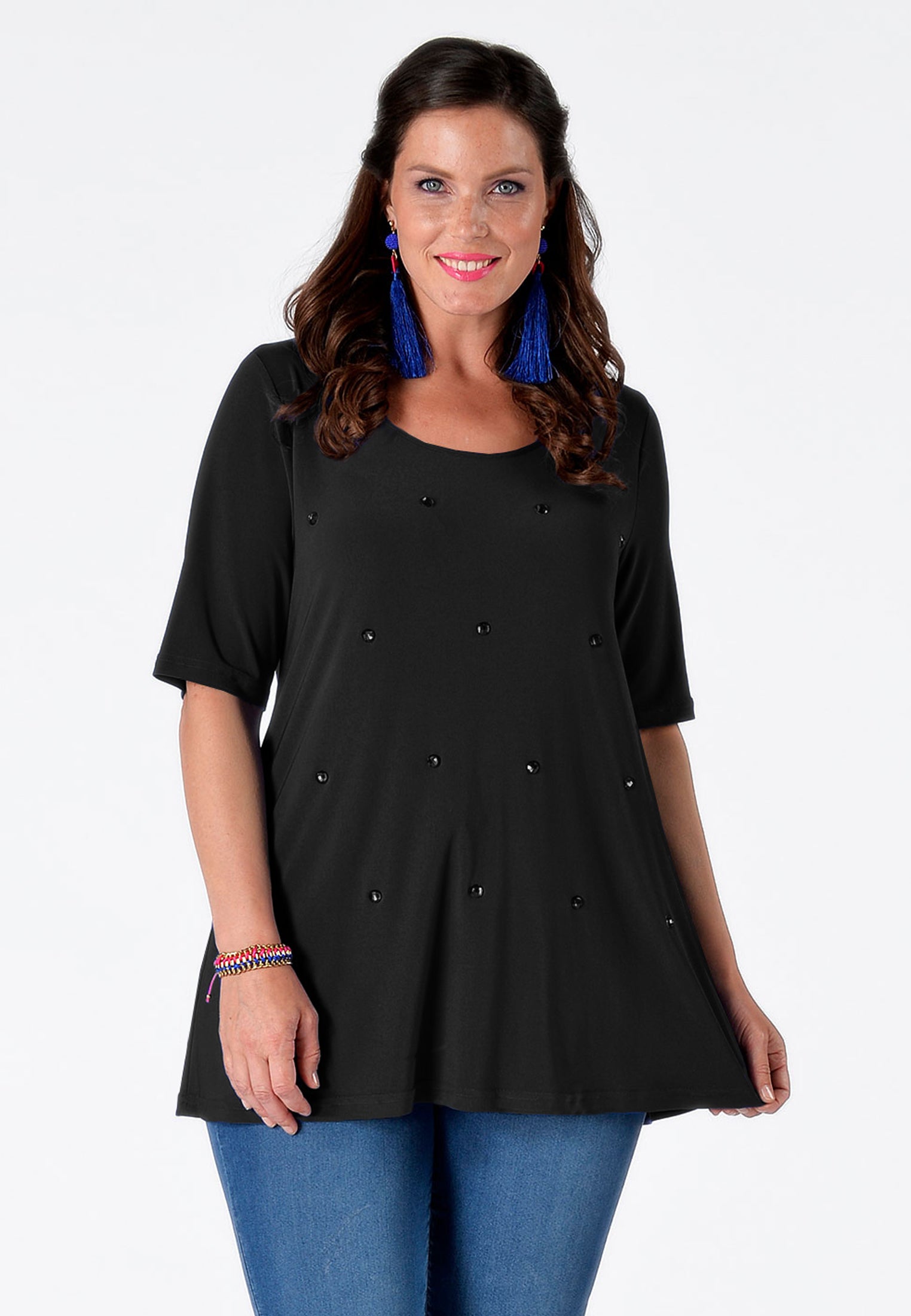 Home » Dames » Kleding » Grote maten » Blouses & tunieken » Yoek Tuniek flare strass | Zwart | Maat Plus