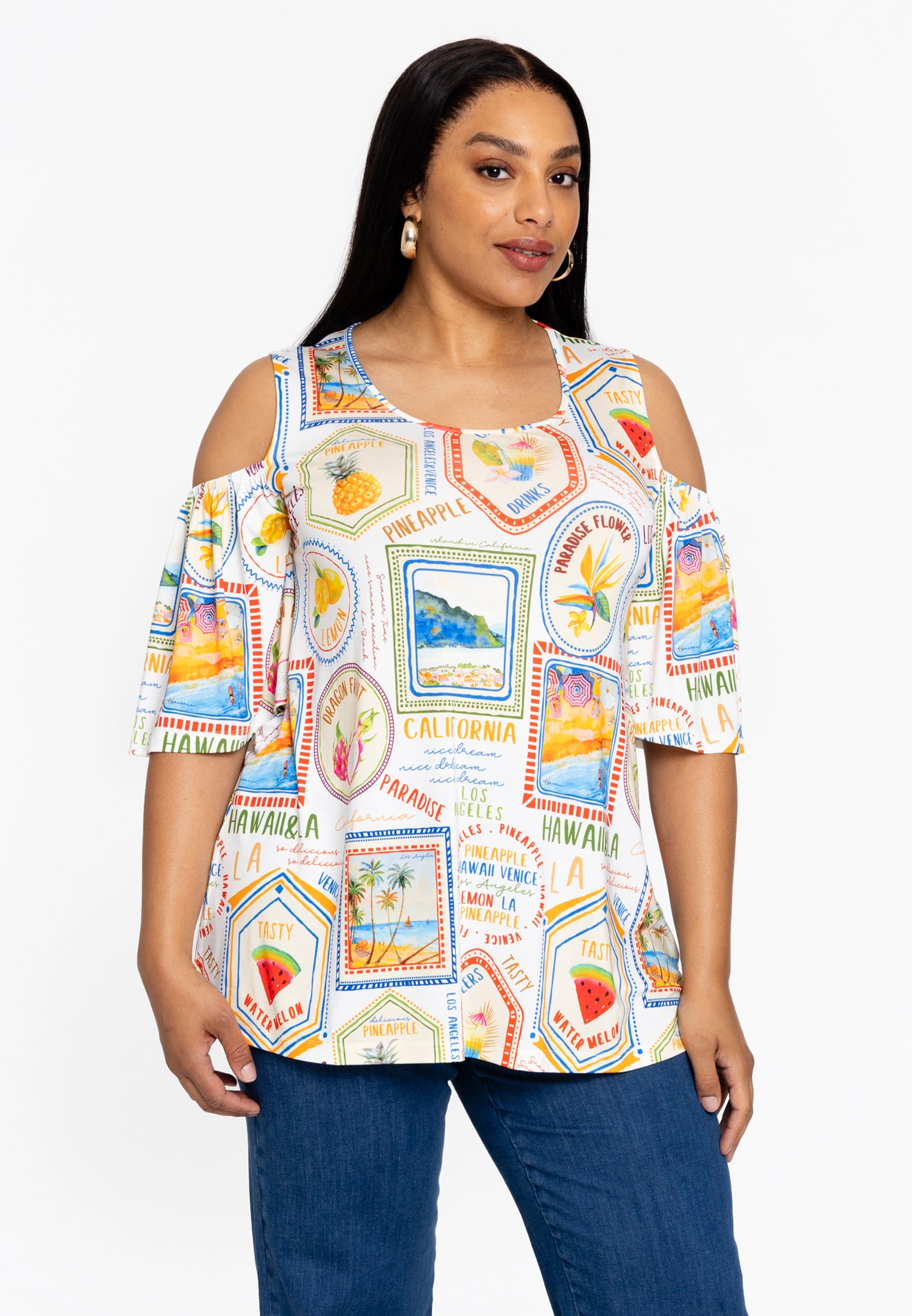 Home » Dames » Kleding » Grote maten » Blouses & tunieken » Yoek Tuniek flare TROPICANA | Beige | Maat 42/44