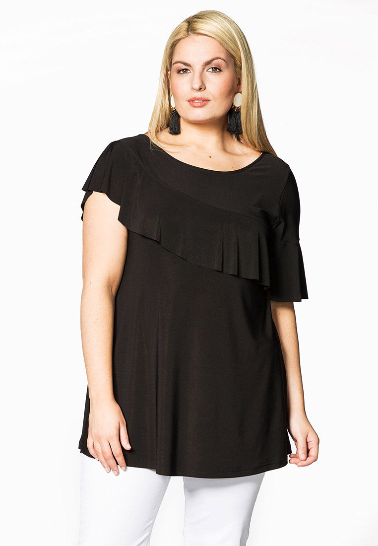 Home » Dames » Kleding » Grote maten » Blouses & tunieken » Yoek Tuniek flare volant | Zwart | Maat XXL