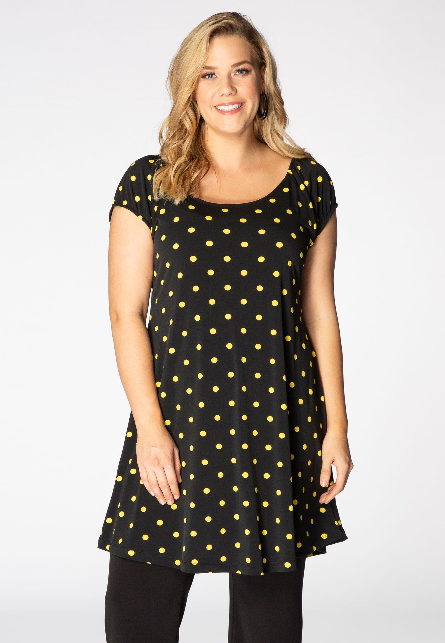 Home » Dames » Kleding » Grote maten » Tops & shirts » Yoek Tuniek met kapmouwen DOTS | Zwart | Maat 38/40