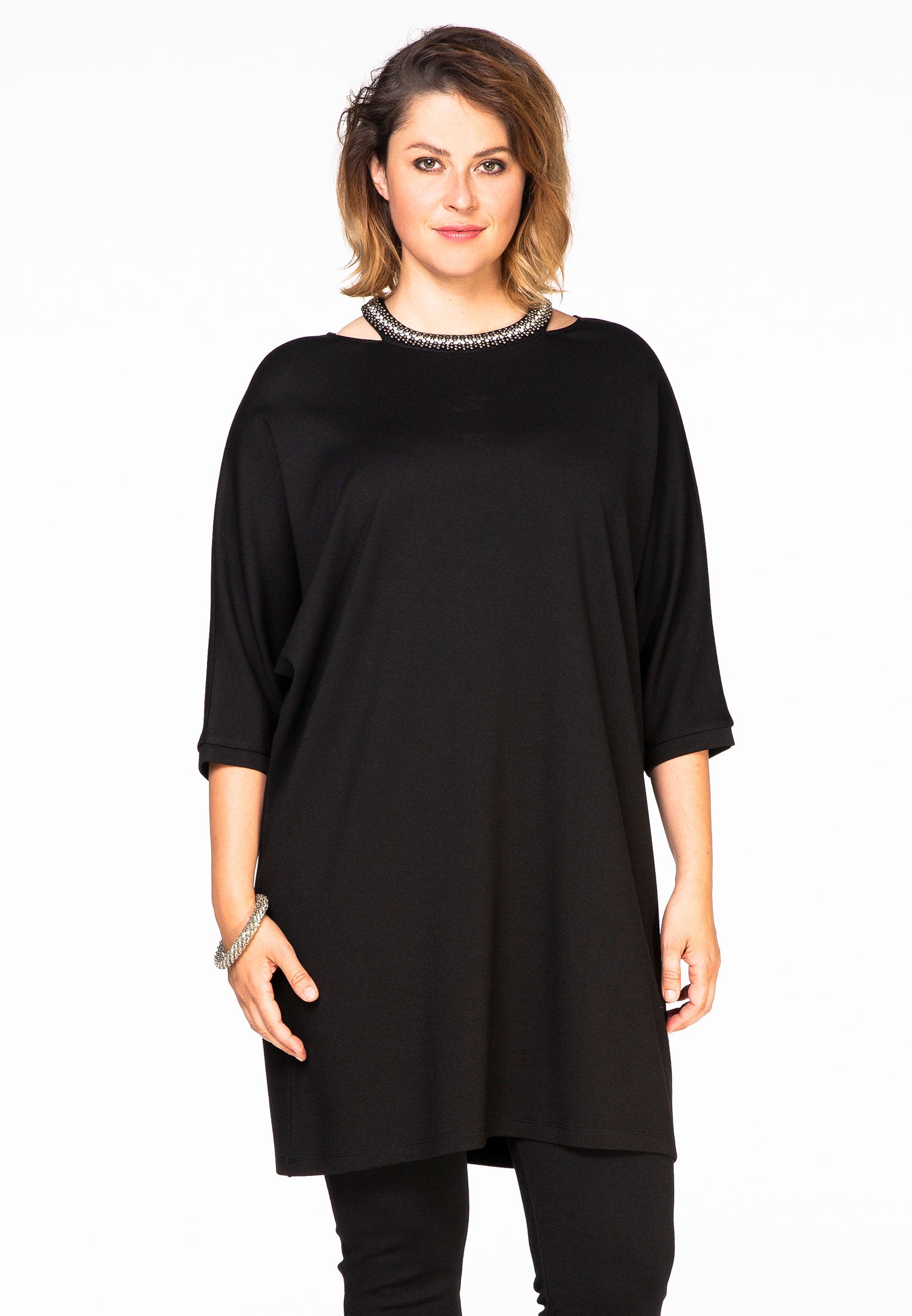 Home » Dames » Kleding » Grote maten » Blouses & tunieken » Yoek Tuniek met ketting | Zwart | Maat XL