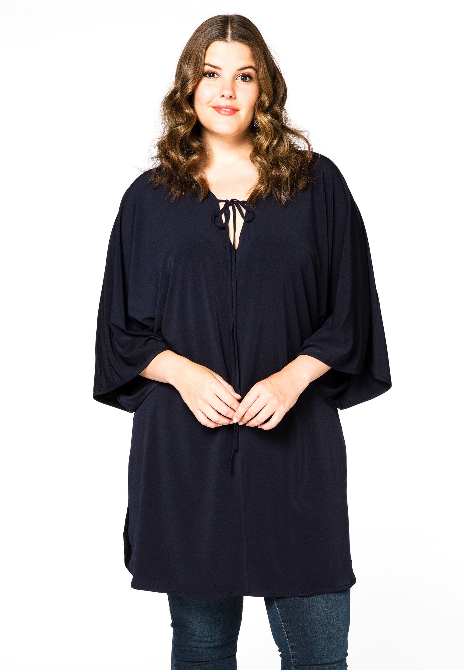 Home » Dames » Kleding » Grote maten » Blouses & tunieken » Yoek Tuniek met koordje | Blauw | Maat 46/48