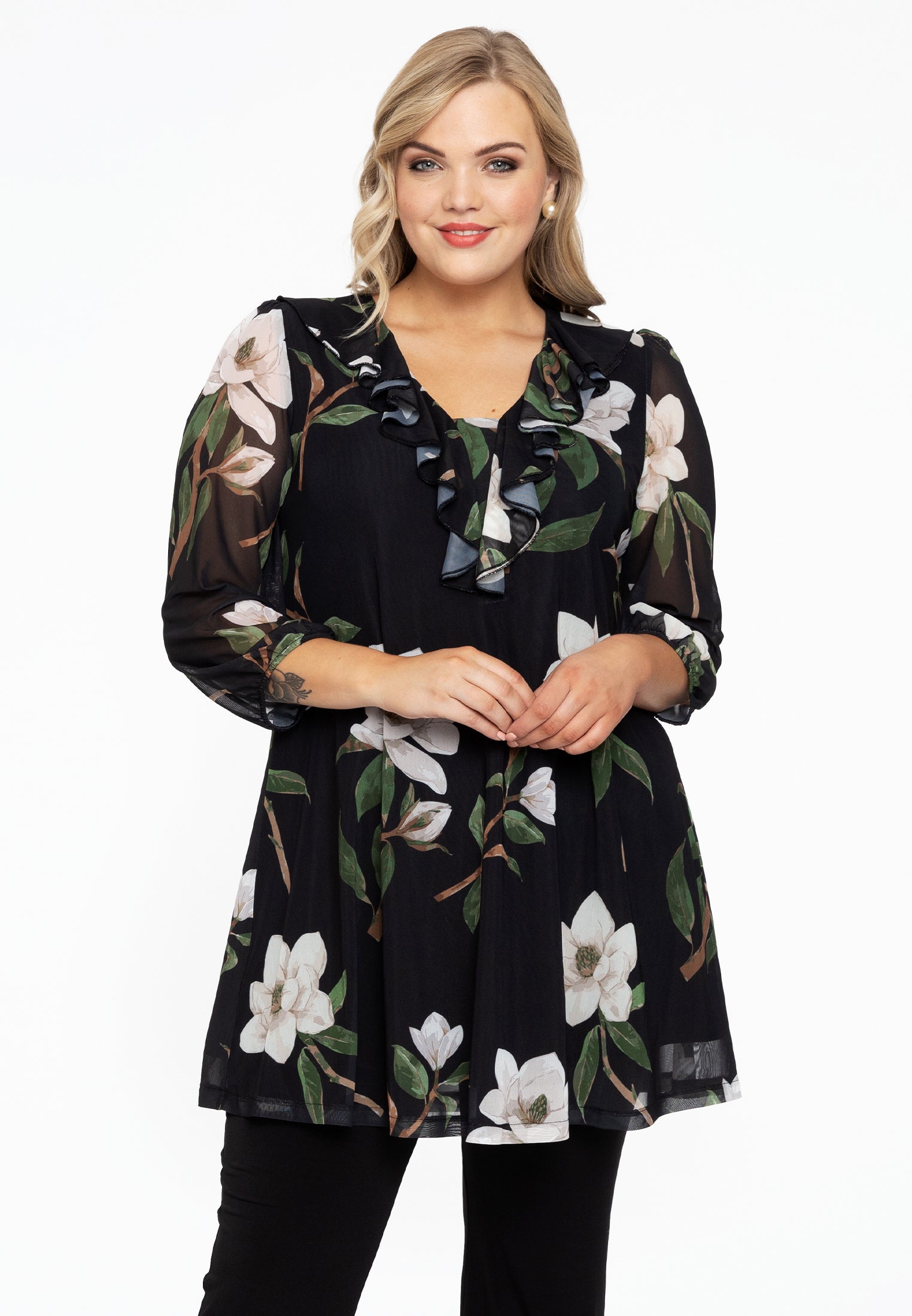 Home » Dames » Kleding » Grote maten » Blouses & tunieken » Yoek Tuniek wide bottom CAMELLIA | Zwart | Maat 38/40