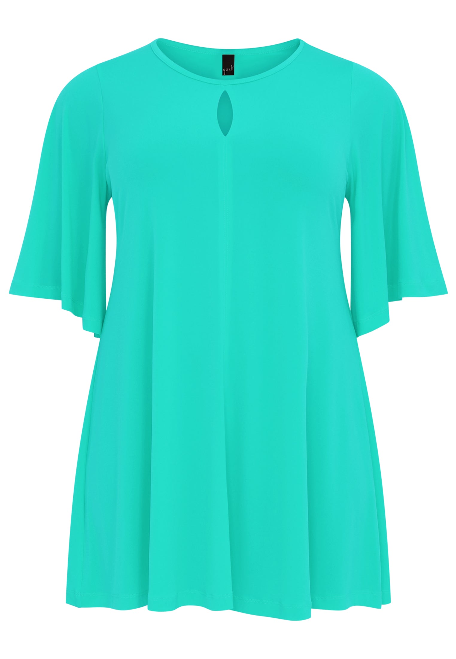 Home » Dames » Kleding » Grote maten » Blouses & tunieken » Yoek Tuniek wide bottom cirkelmouw | Turquoise | Maat 46/48