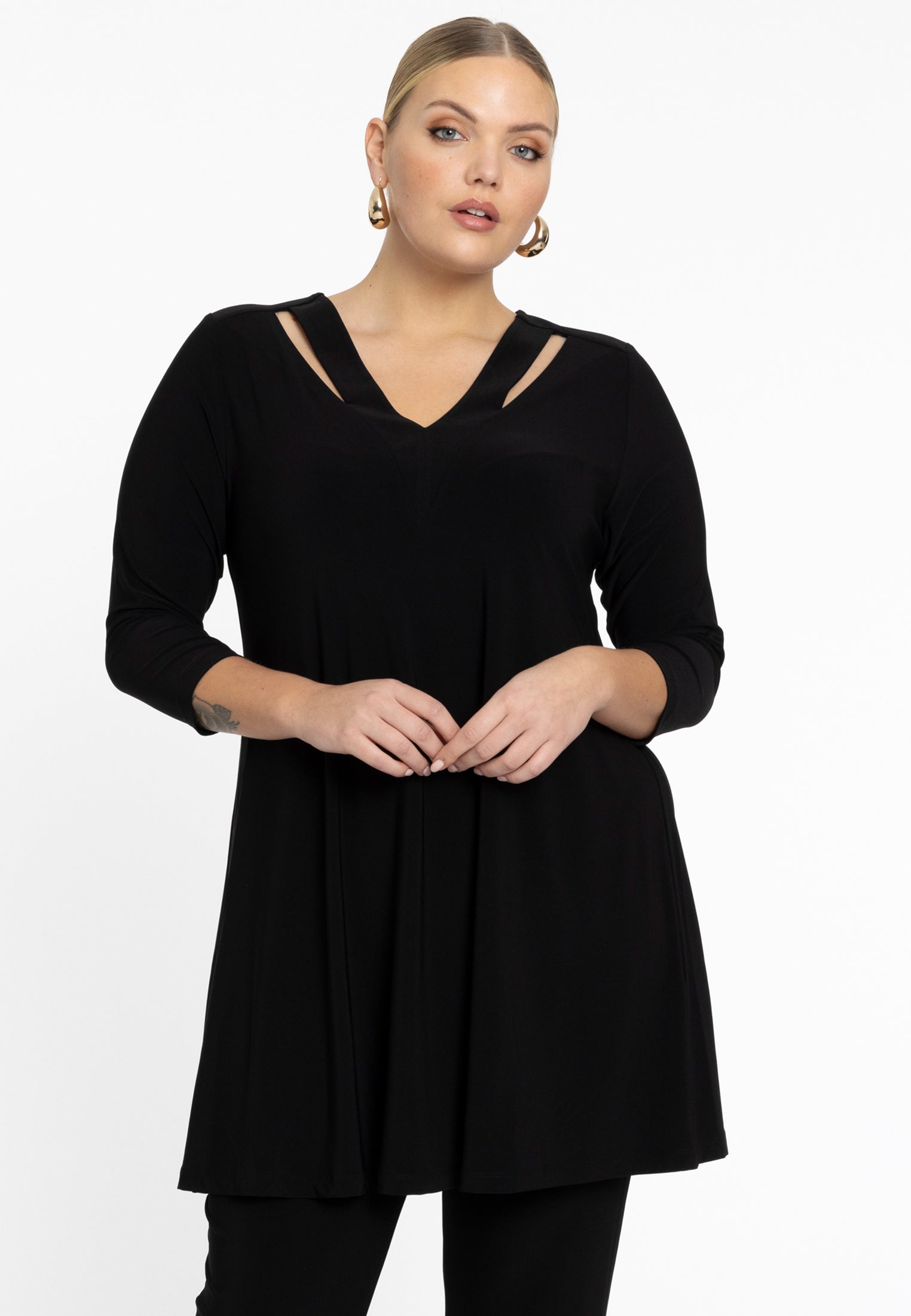 Home » Dames » Kleding » Grote maten » Blouses & tunieken » Yoek Tuniek wide bottom cutout | Zwart | Maat 58/60