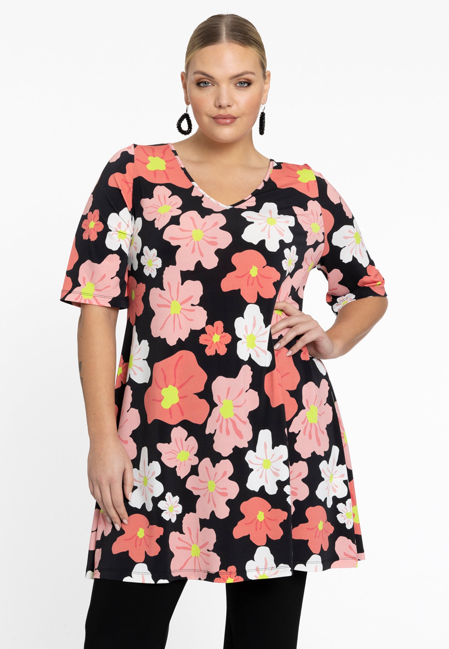 Home » Dames » Kleding » Grote maten » Blouses & tunieken » Yoek Tuniek wide bottom HIBISCUS | Zwart | Maat 42/44