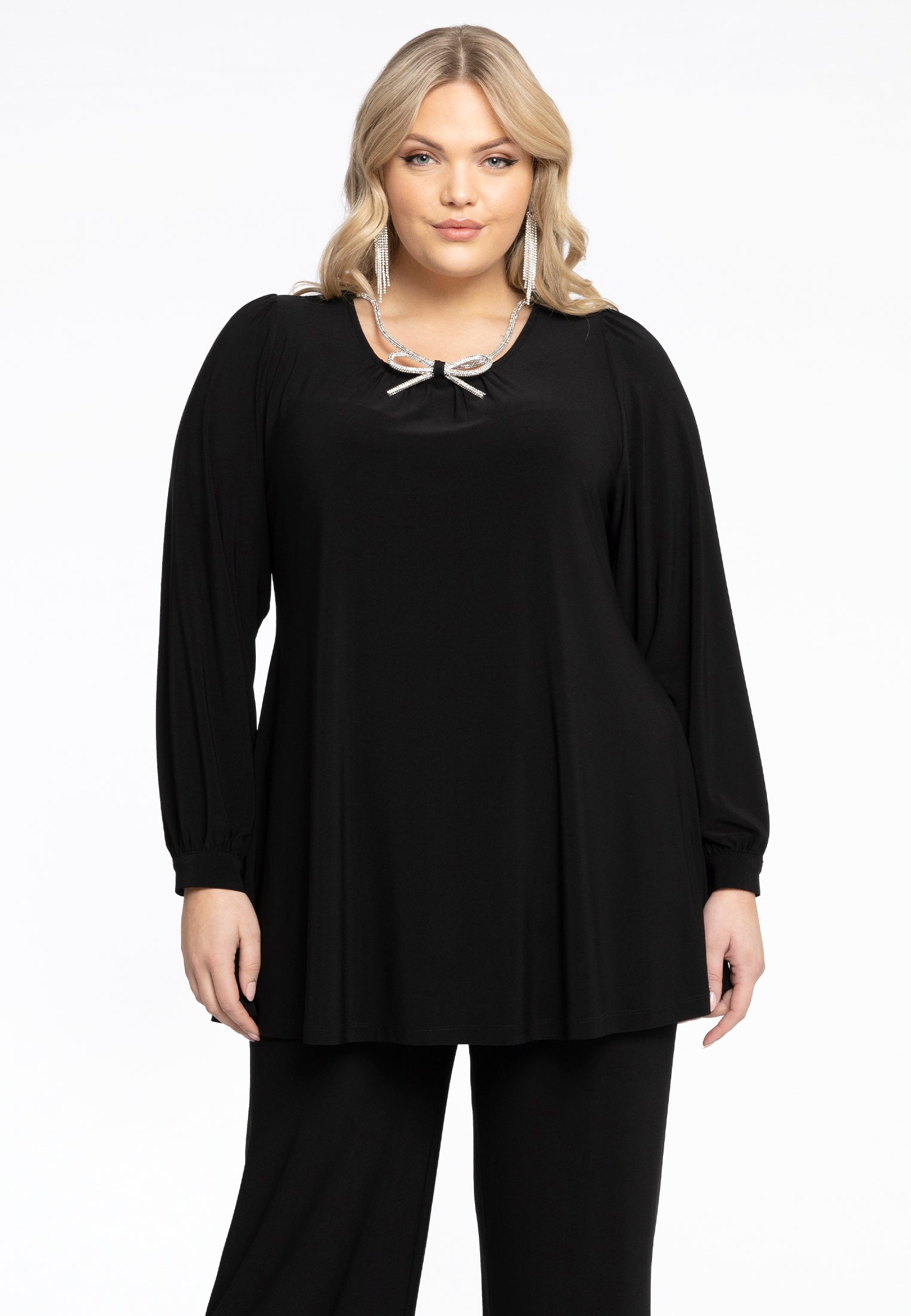 Home » Dames » Kleding » Grote maten » Blouses & tunieken » Yoek Tuniek Wide Bottom met strass strik | Zwart | Maat 38/40