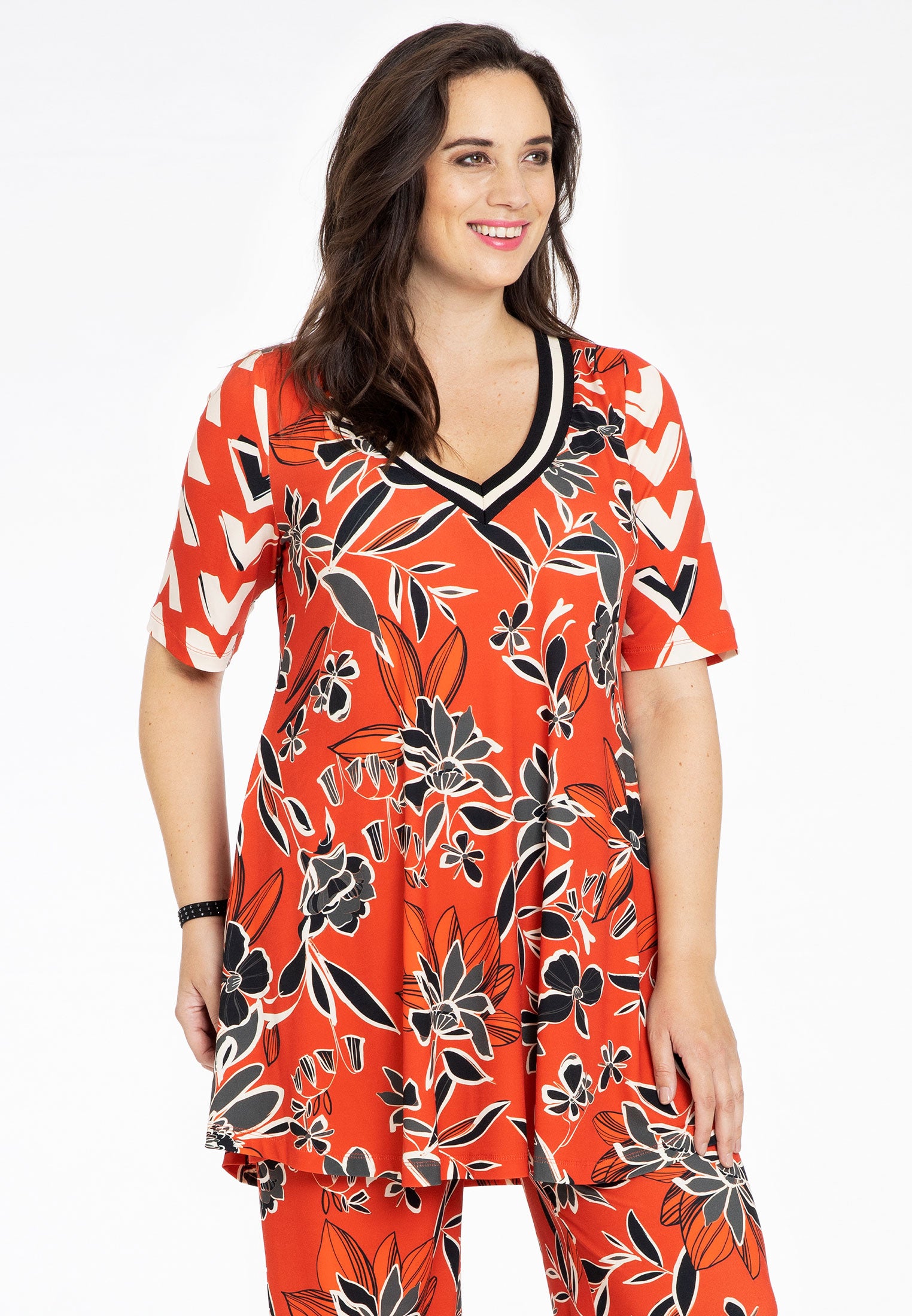 Home » Dames » Kleding » Grote maten » Blouses & tunieken » Yoek Tuniek wide bottom MIX PRINT | Rood | Maat 54/56