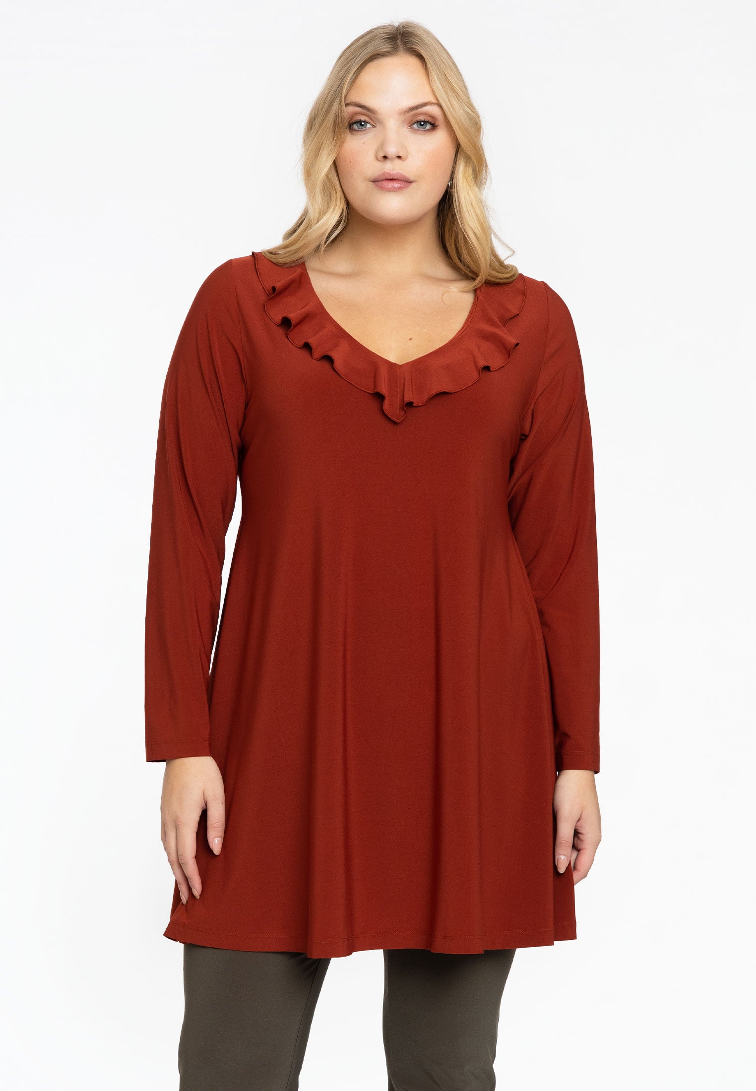 Home » Dames » Kleding » Grote maten » Blouses & tunieken » Yoek Tuniek wide bottom ruches | Bruin | Maat 38/40