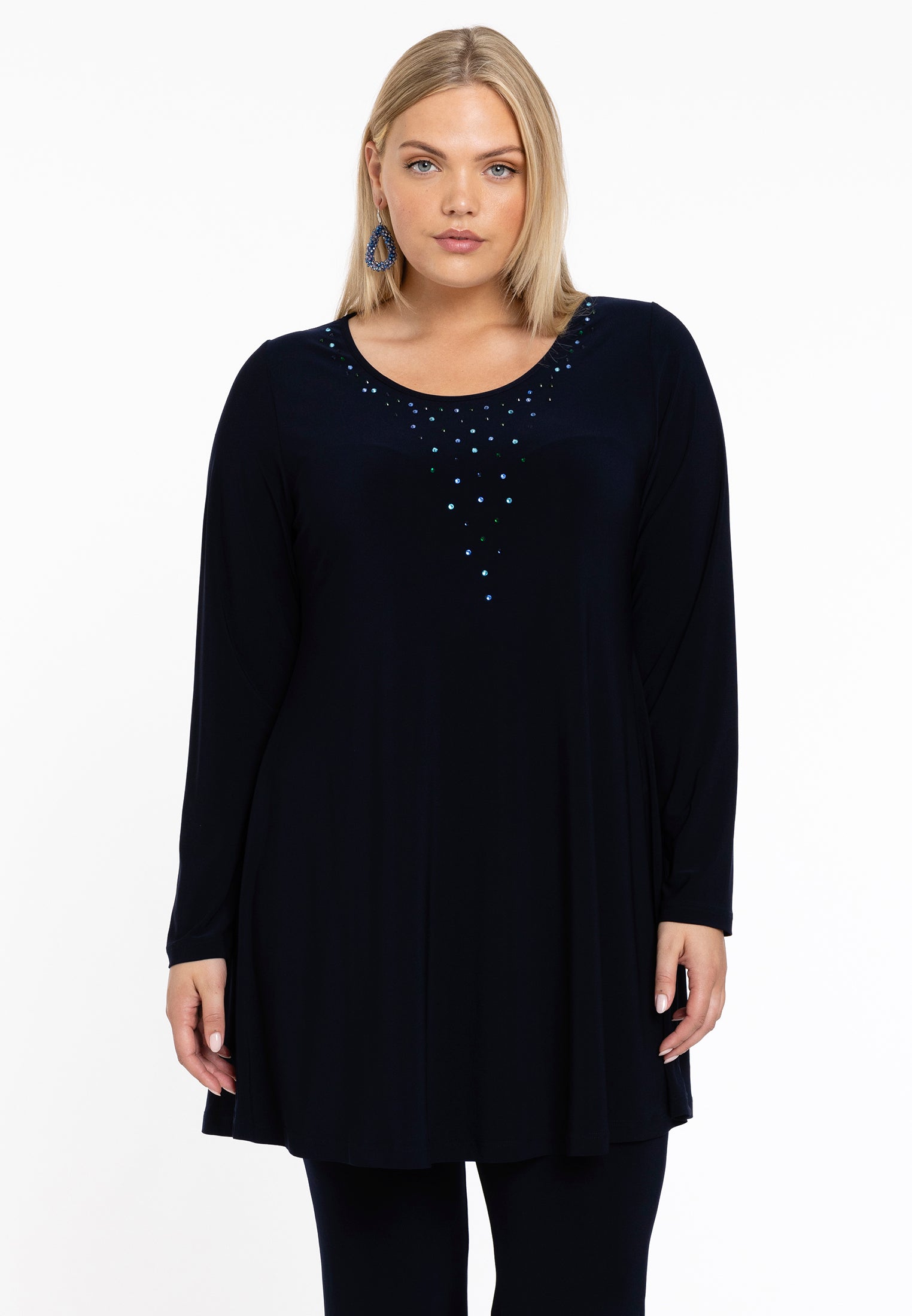 Home » Dames » Kleding » Grote maten » Blouses & tunieken » Yoek Tuniek wide bottom strass | Blauw | Maat 42/44