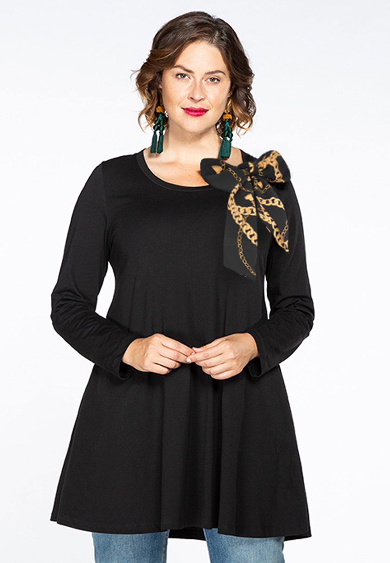 Home » Dames » Kleding » Grote maten » Blouses & tunieken » Yoek Tuniek wide bottom strik Paris | Zwart | Maat 38/40