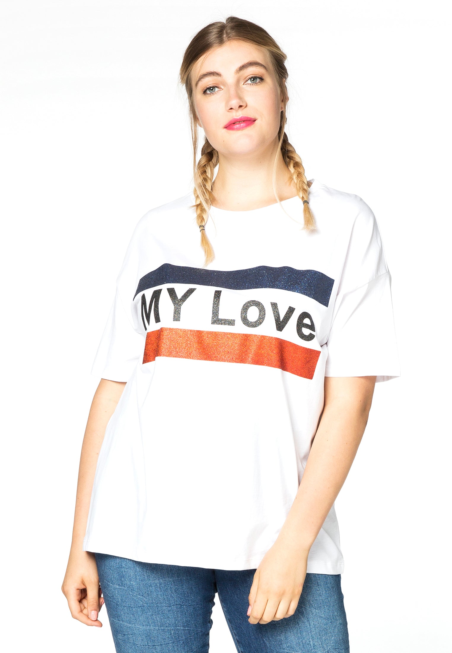 Home » Dames » Kleding » Grote maten » Tops & shirts » Yoek Wijd shirt MY LOVE | Wit | Maat 46/48