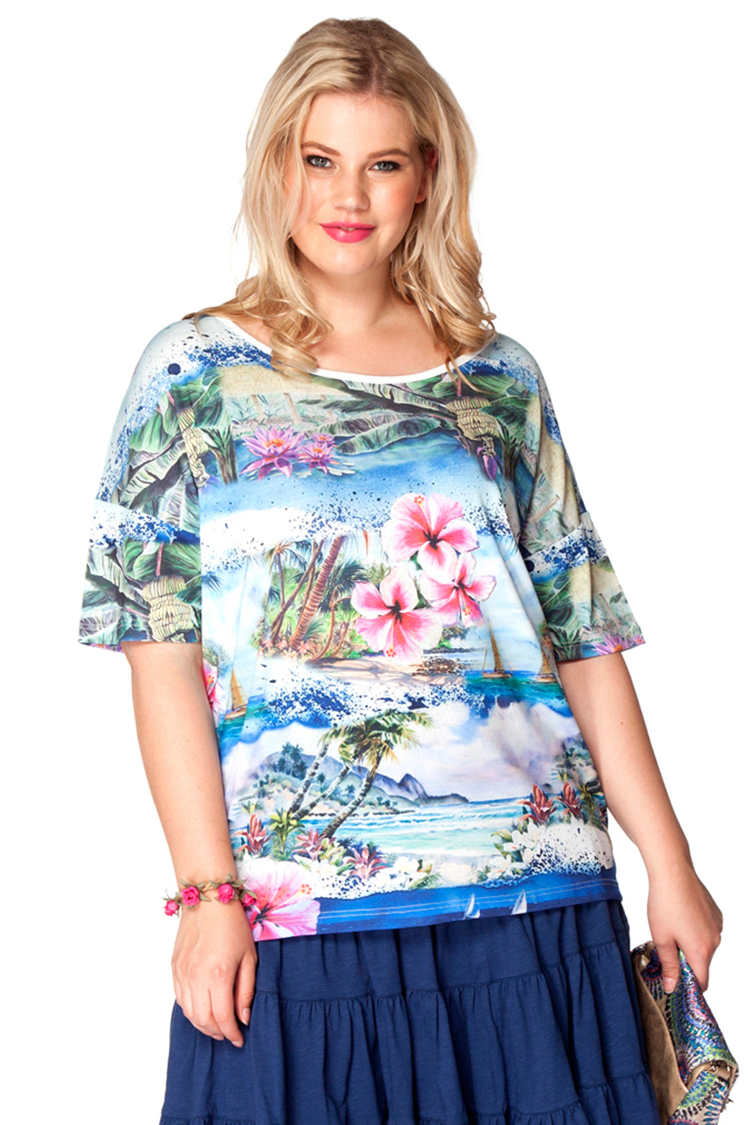 Home » Dames » Kleding » Grote maten » Tops & shirts » Yoek Wijd shirt Tropical | Blauw | Maat M