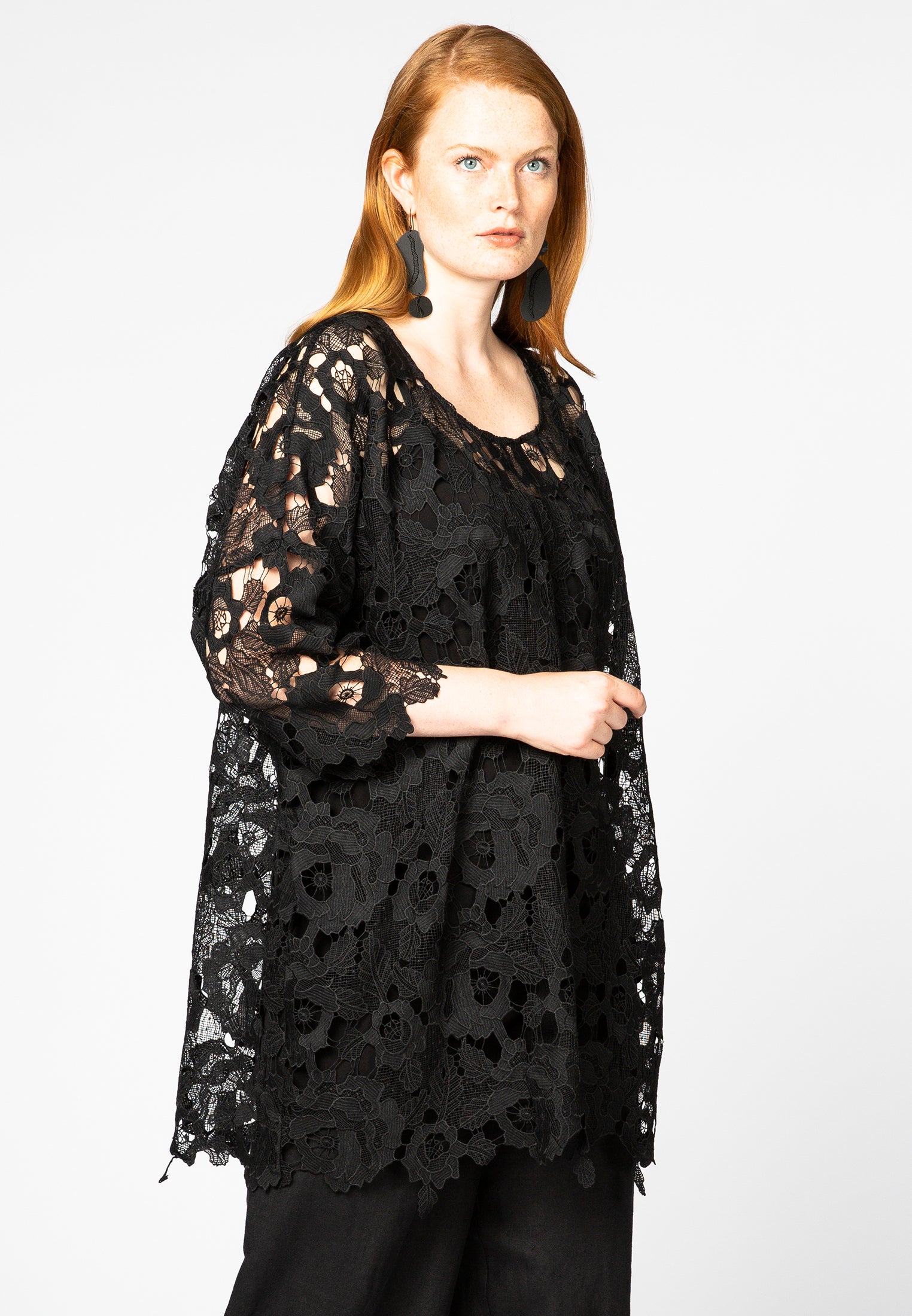 Home » Dames » Kleding » Grote maten » Blouses & tunieken » Yoek Wijde tuniek met kant | Zwart | Maat 38/40