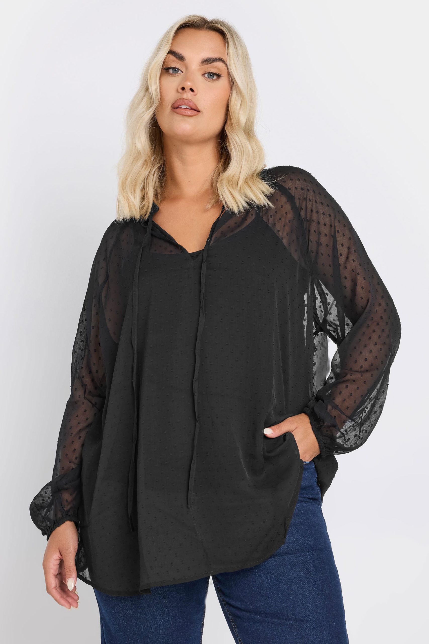 Home » Dames » Kleding » Grote maten » Blouses & tunieken » Yours Blouse Met Dobbytextuur En Strikdetail In Zwart, Women’s Curve & Plus Size, Yours