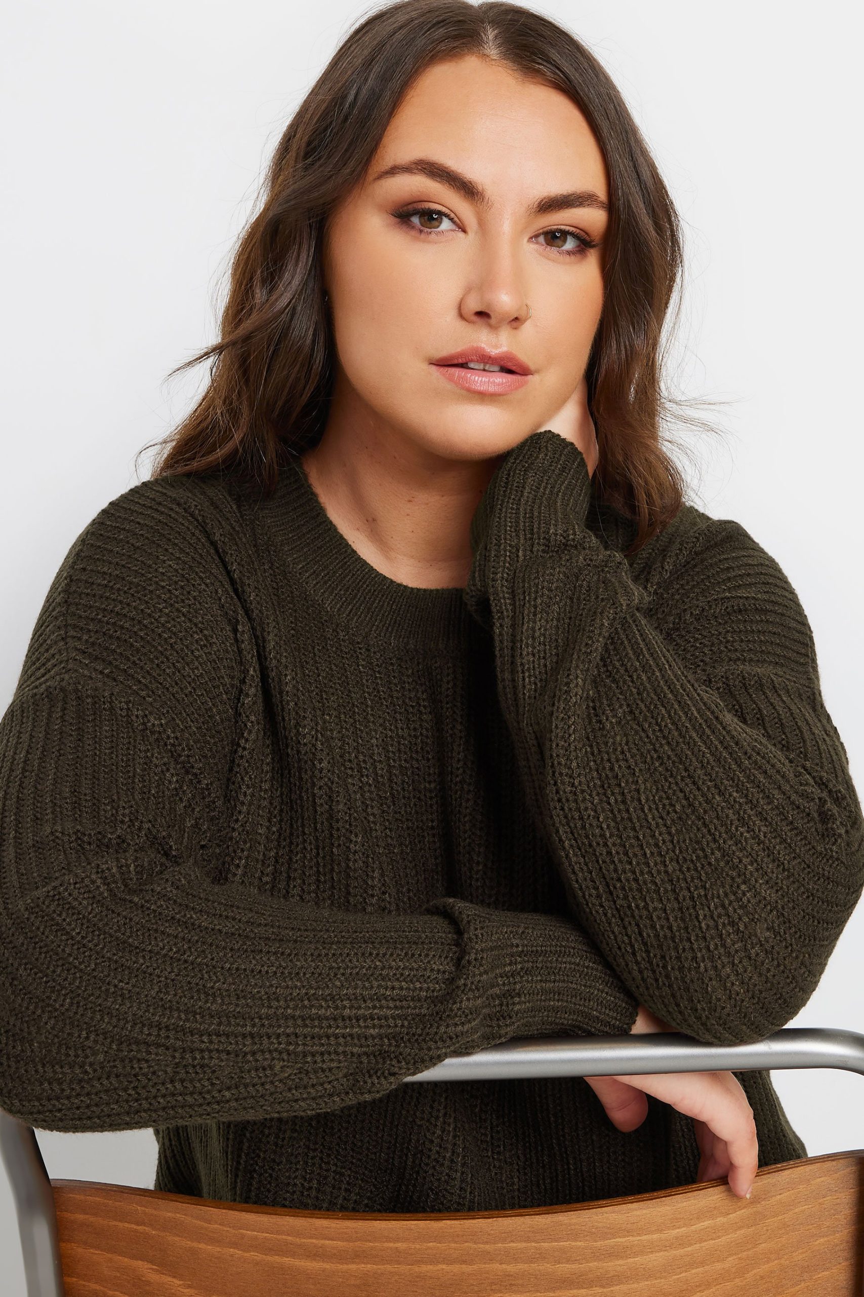 Home » Dames » Kleding » Grote maten » Yours Gebreide Trui Met Lange Verlaagde Mouwen In Chocoladebruin, Women’s Curve & Plus Size, Yours