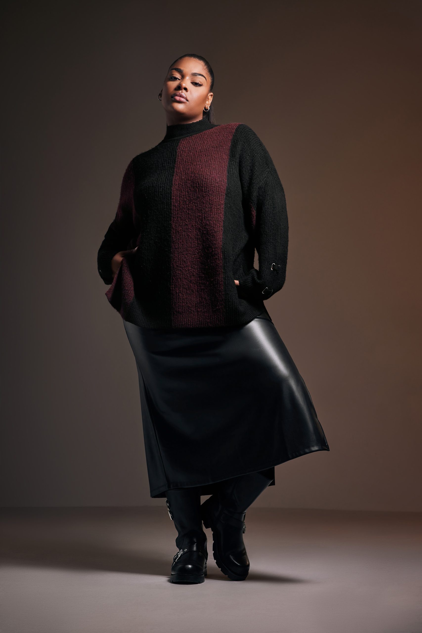 Home » Dames » Kleding » Grote maten » Yours Gebreide Trui Met Verticaal Streepontwerp In Zwart/Bordeauxrood, Women’s Curve & Plus Size, Yours