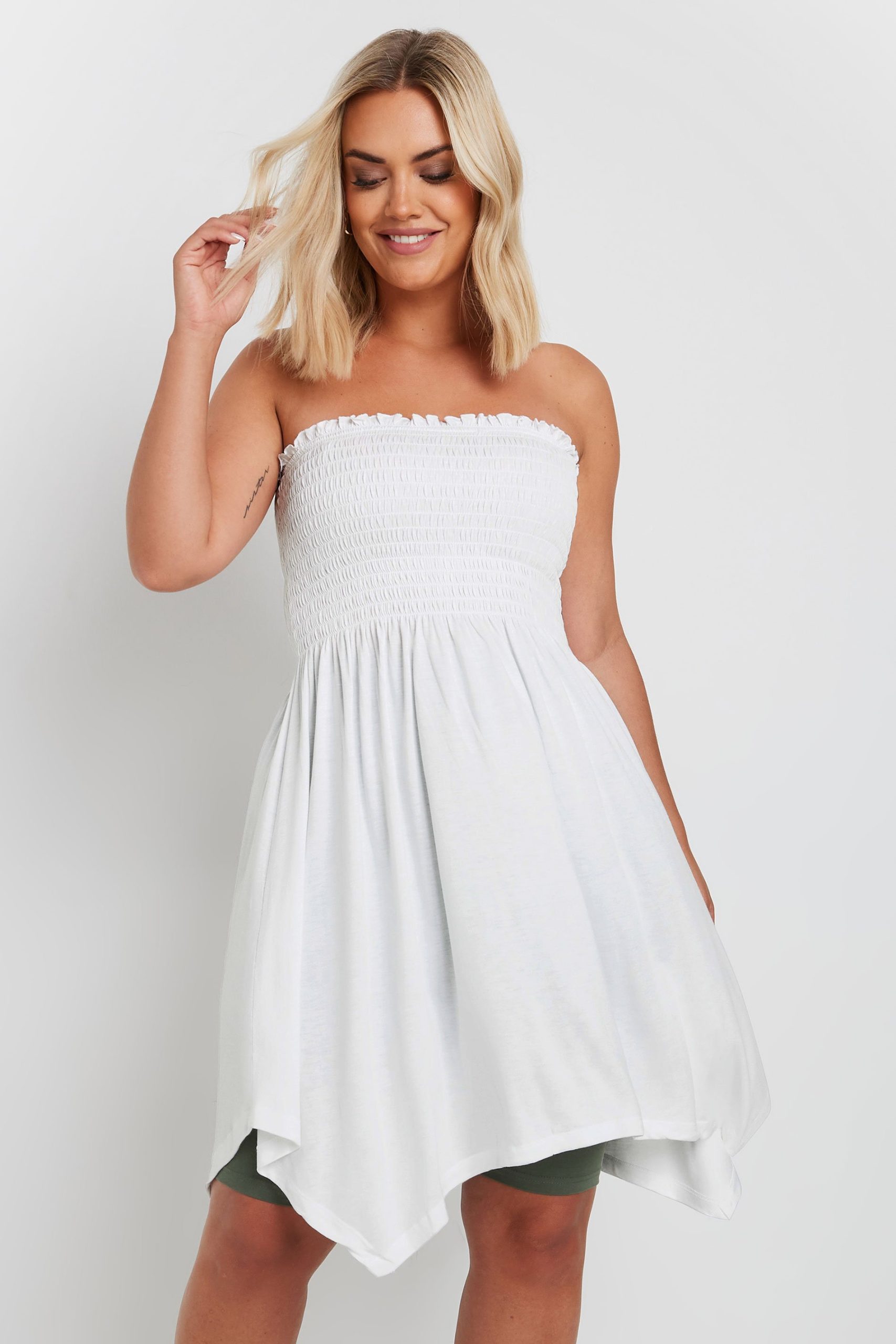 Home » Dames » Kleding » Grote maten » Tops & shirts » Yours Lange Bandeautop Met Smokwerk In Wit, Women’s Curve & Plus Size, Yours