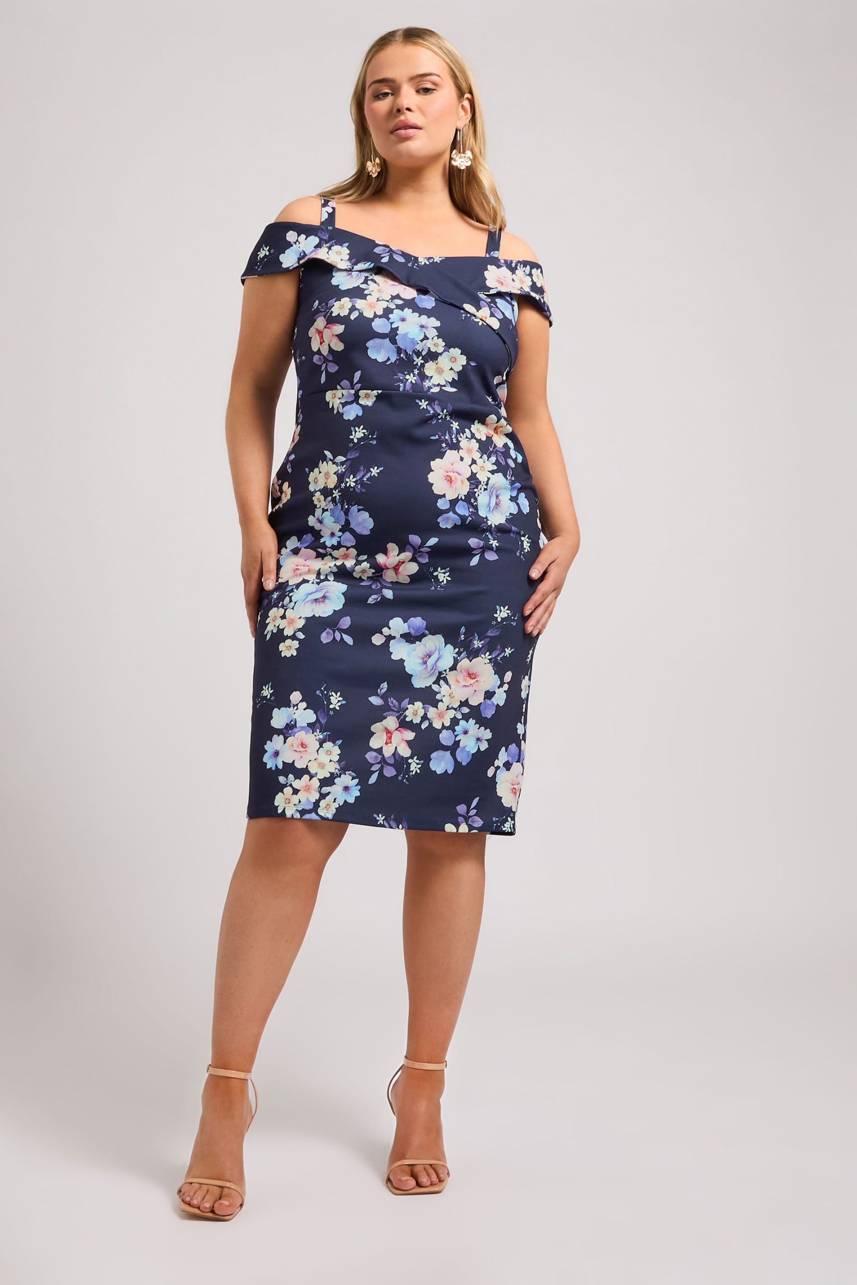 Yours London Bardotjurk Met Bloemontwerp En Gekruiste Halslijn In Donkerblauw, Women’s Curve & Plus Size, Yours London