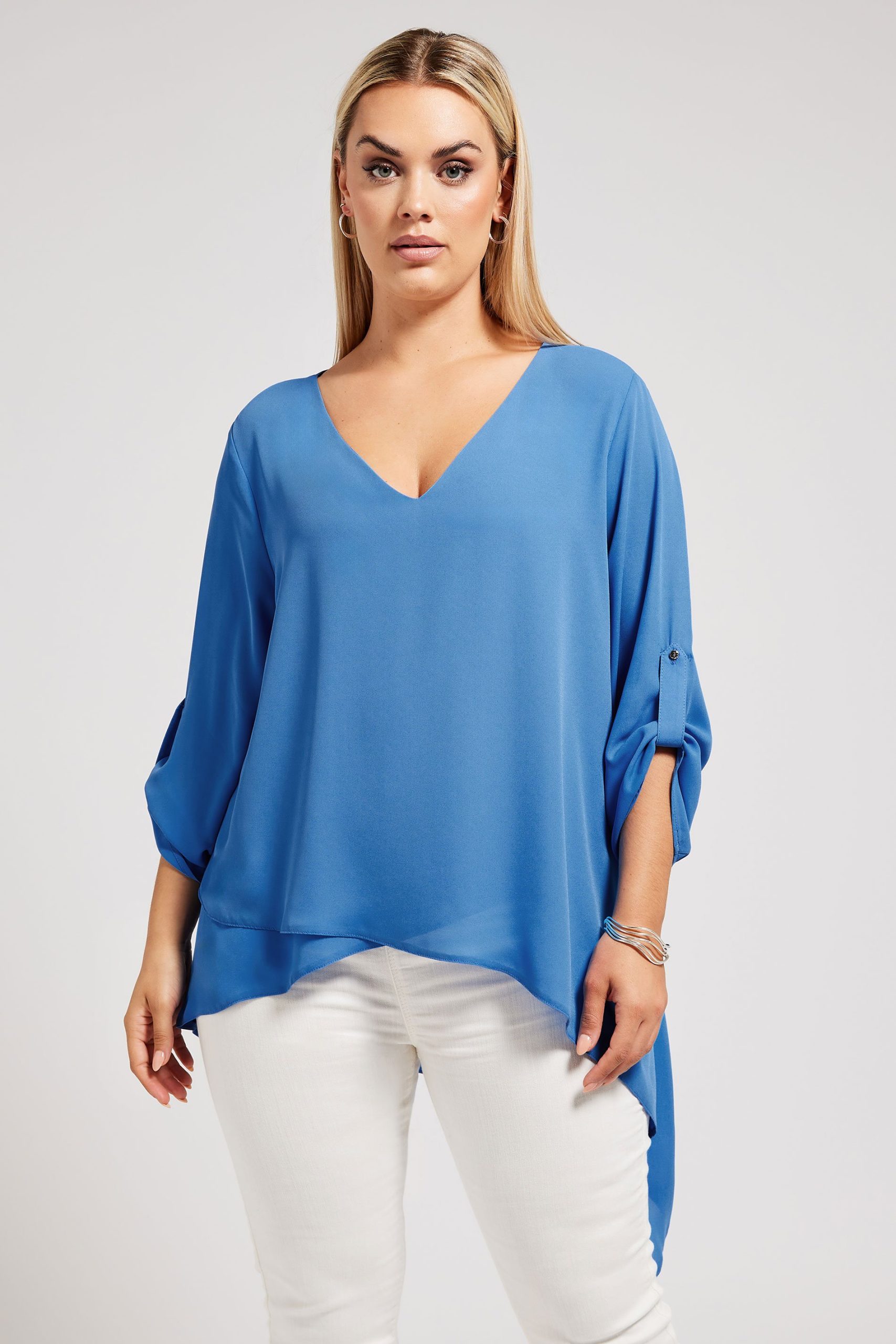 Home » Dames » Kleding » Grote maten » Blouses & tunieken » Yours London Blouse Met Asymmetrische Zoom In Blauw, Women’s Curve & Plus Size, Yours London