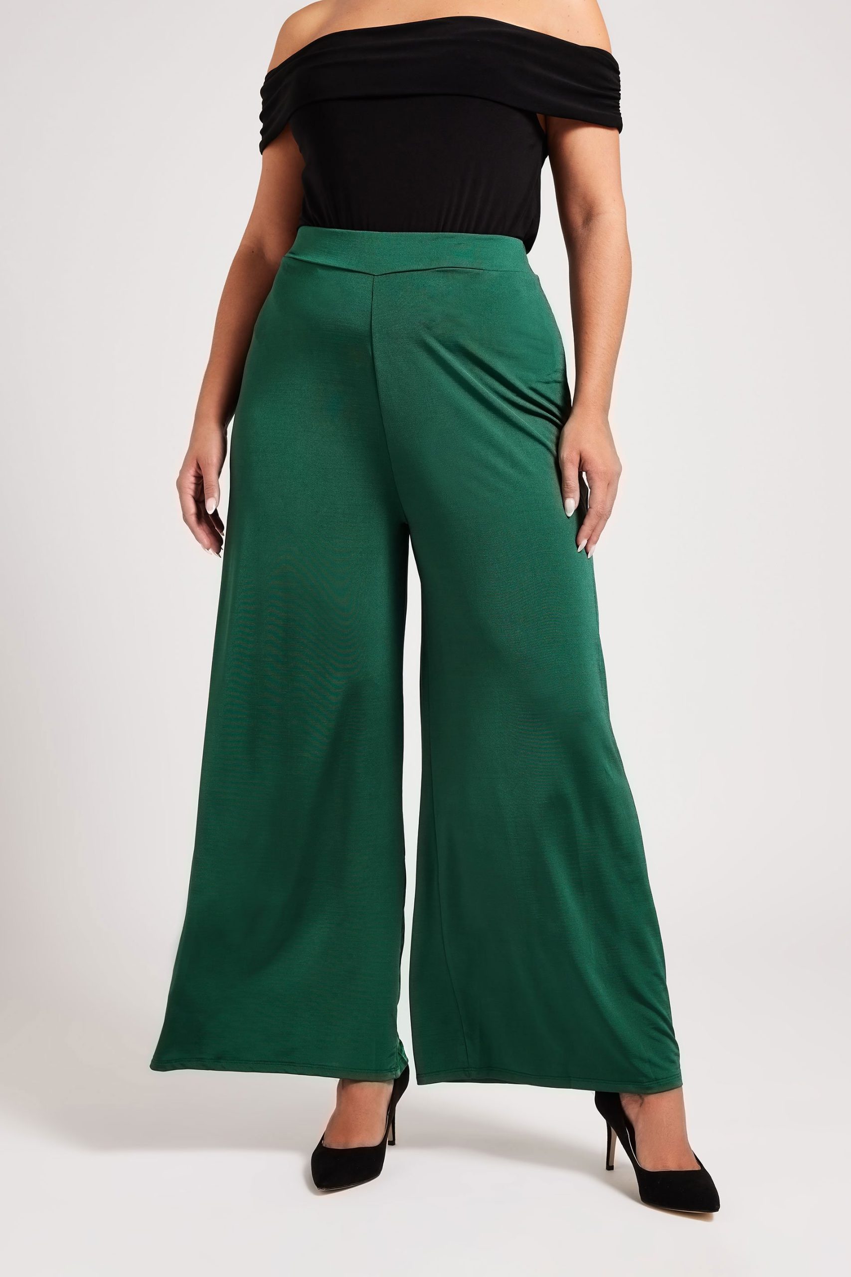 Yours London Broek Van Slinky Stof Met Wijde Pijpen In Smaragdgroen Size 58-60