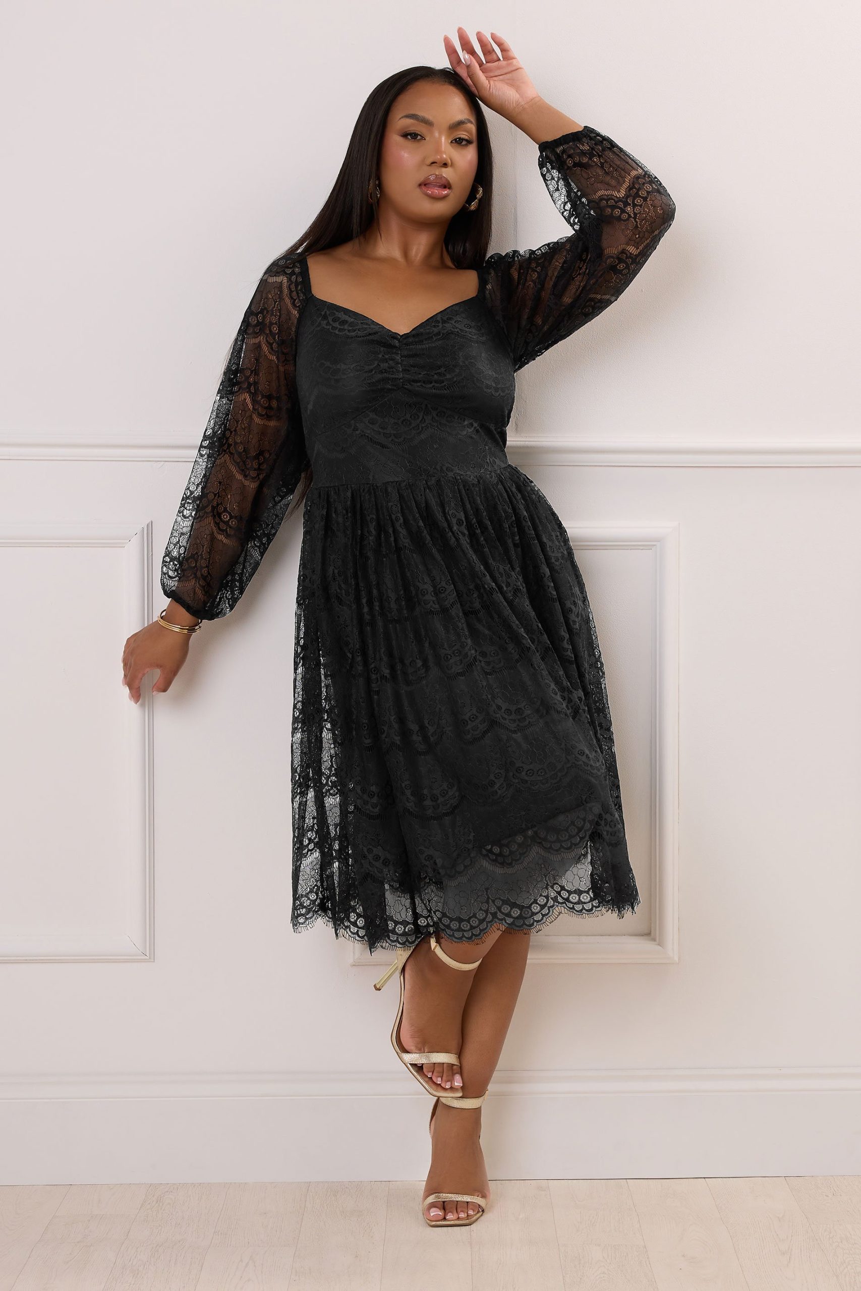 Yours London Kanten Midi Skaterjurk Met Sweetheart Halslijn In Zwart, Women’s Curve & Plus Size, Yours London
