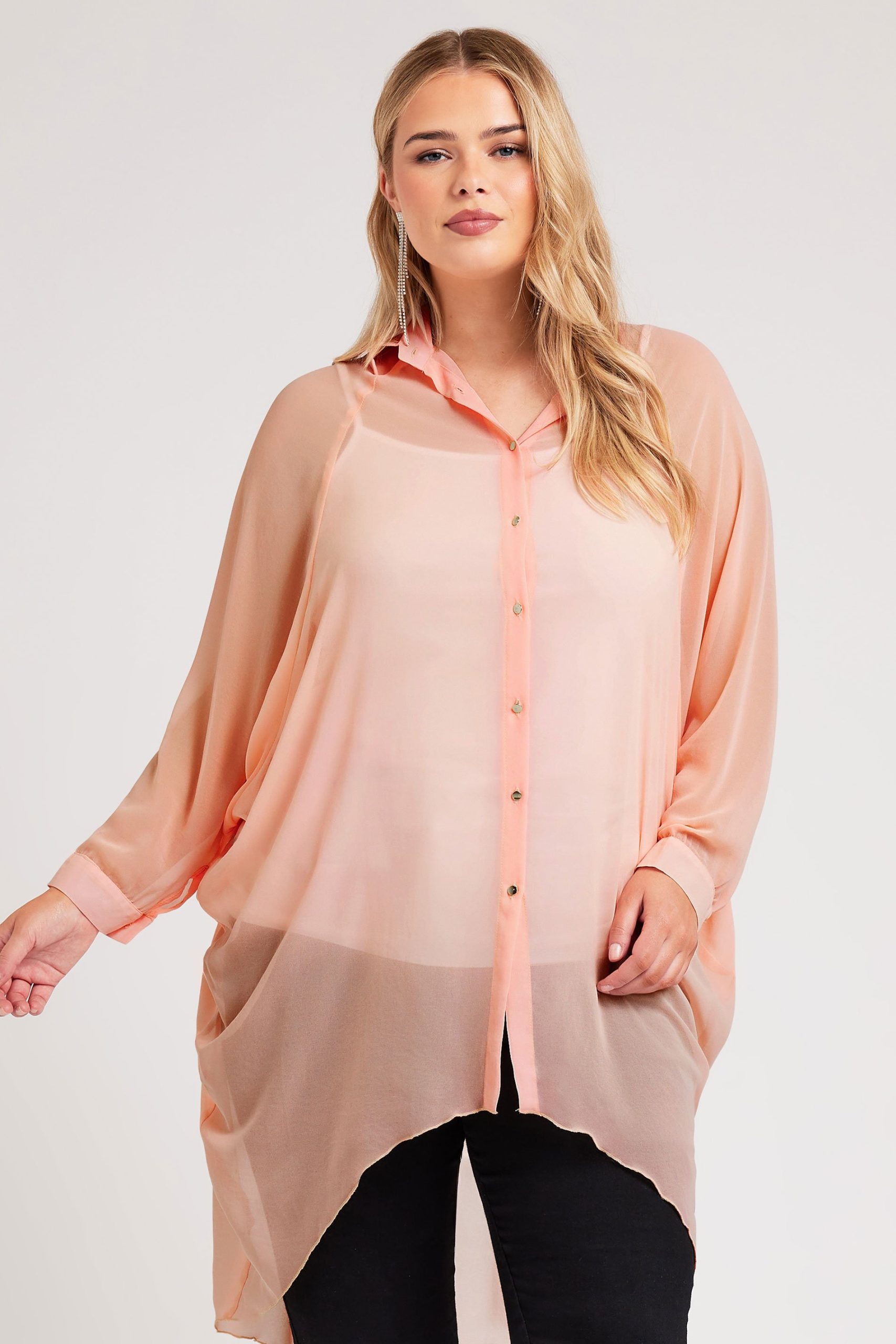 Yours London Lang Doorschijnend Overhemd Met Vleermuismouwen In Lichtroze Size 50-52