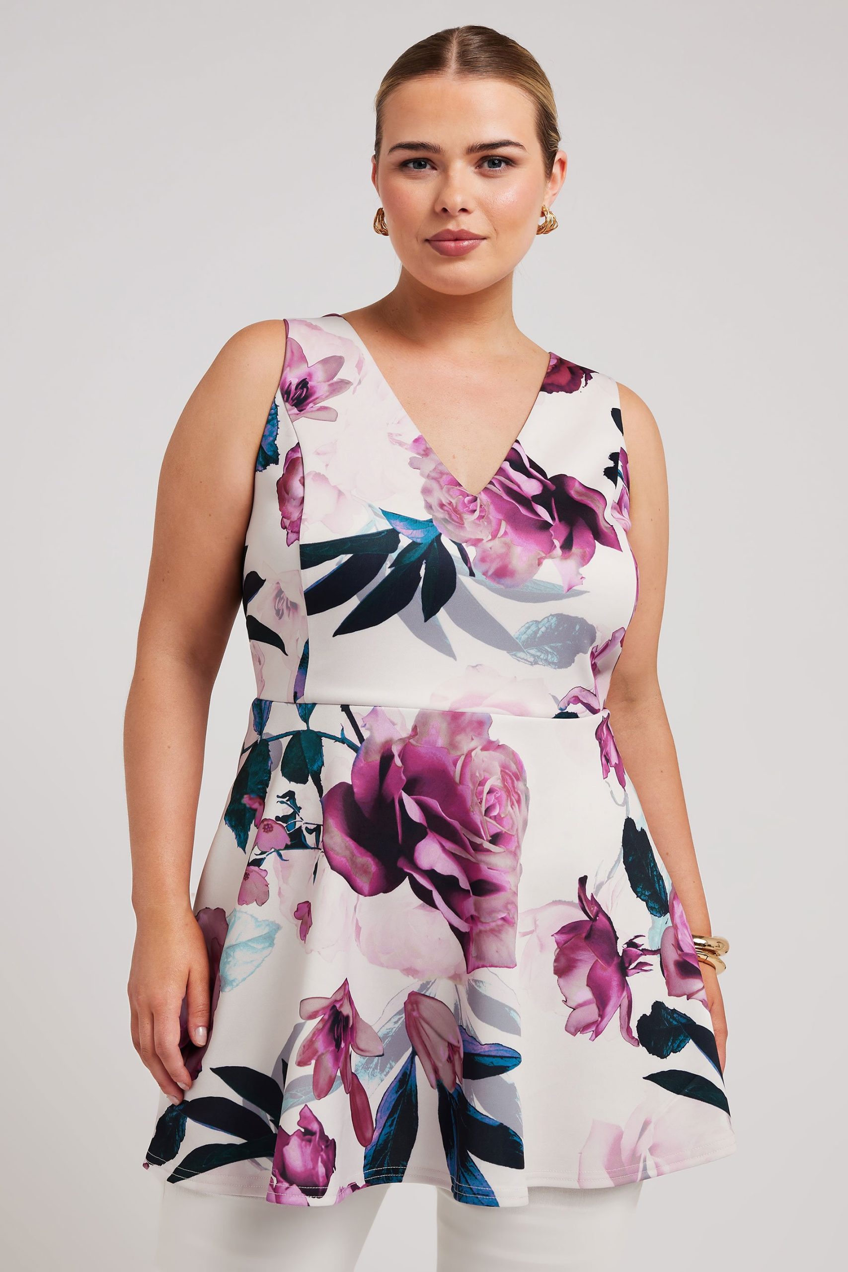 Home » Dames » Kleding » Grote maten » Tops & shirts » Yours London Peplum Top Zonder Mouwen Met Bloemontwerp In Wit/Roze, Women’s Curve & Plus Size, Yours London