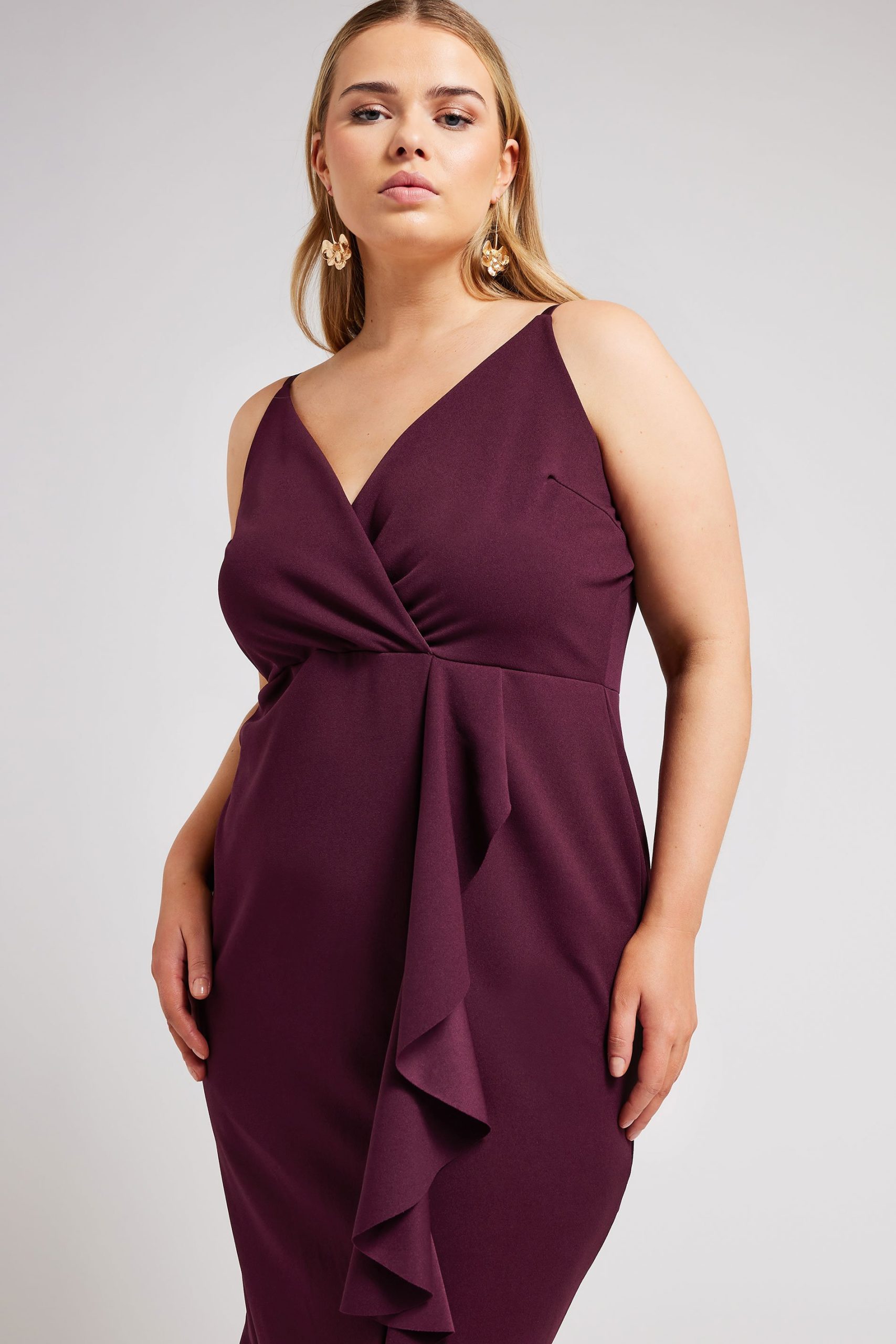 Yours London Wikkeljurk Met Camibandjes En Ruchedetail In Paars Size 52