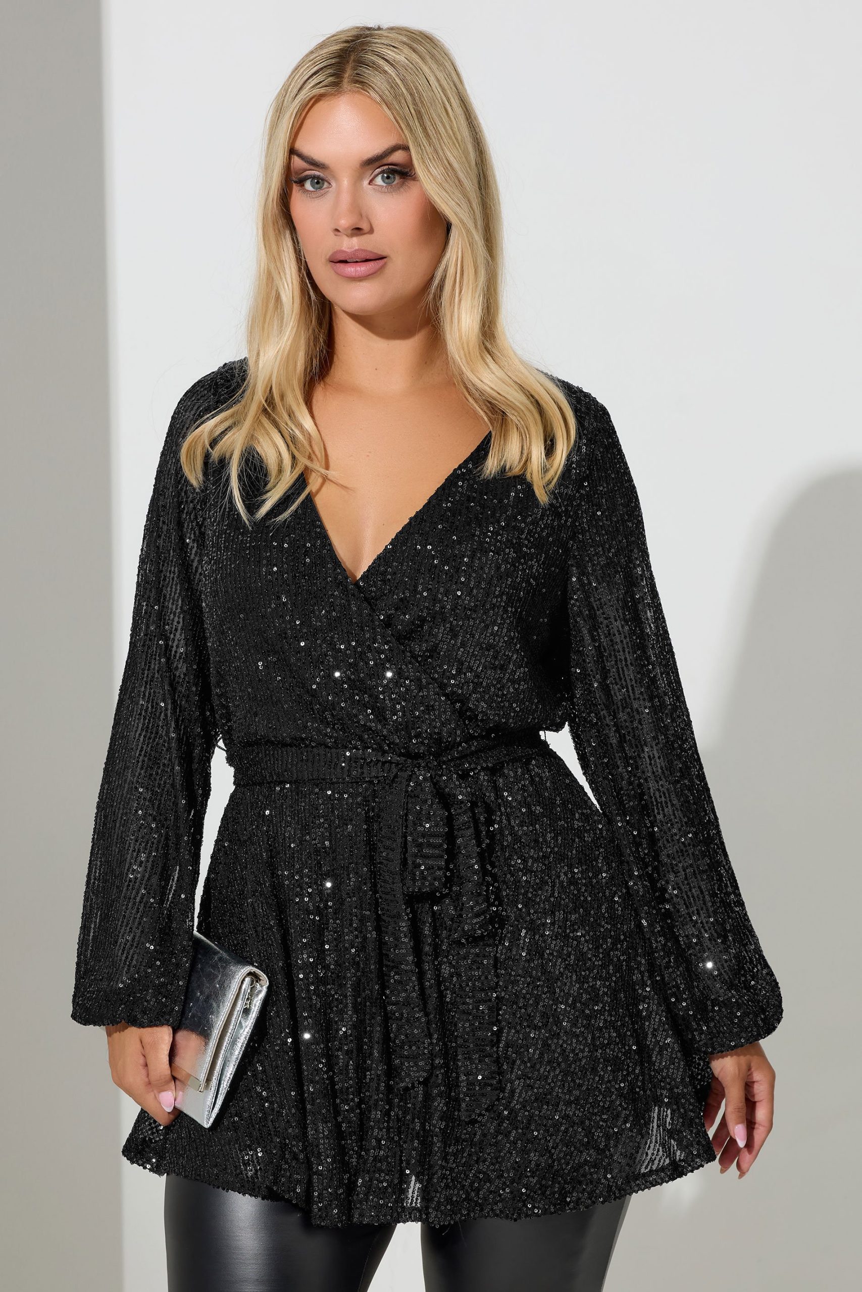 Home » Dames » Kleding » Grote maten » Tops & shirts » Yours London Wikkeltop Met Paillettenversiering, Vhals En Tailleband In Zwart, Women’s Curve & Plus Size, Yours London