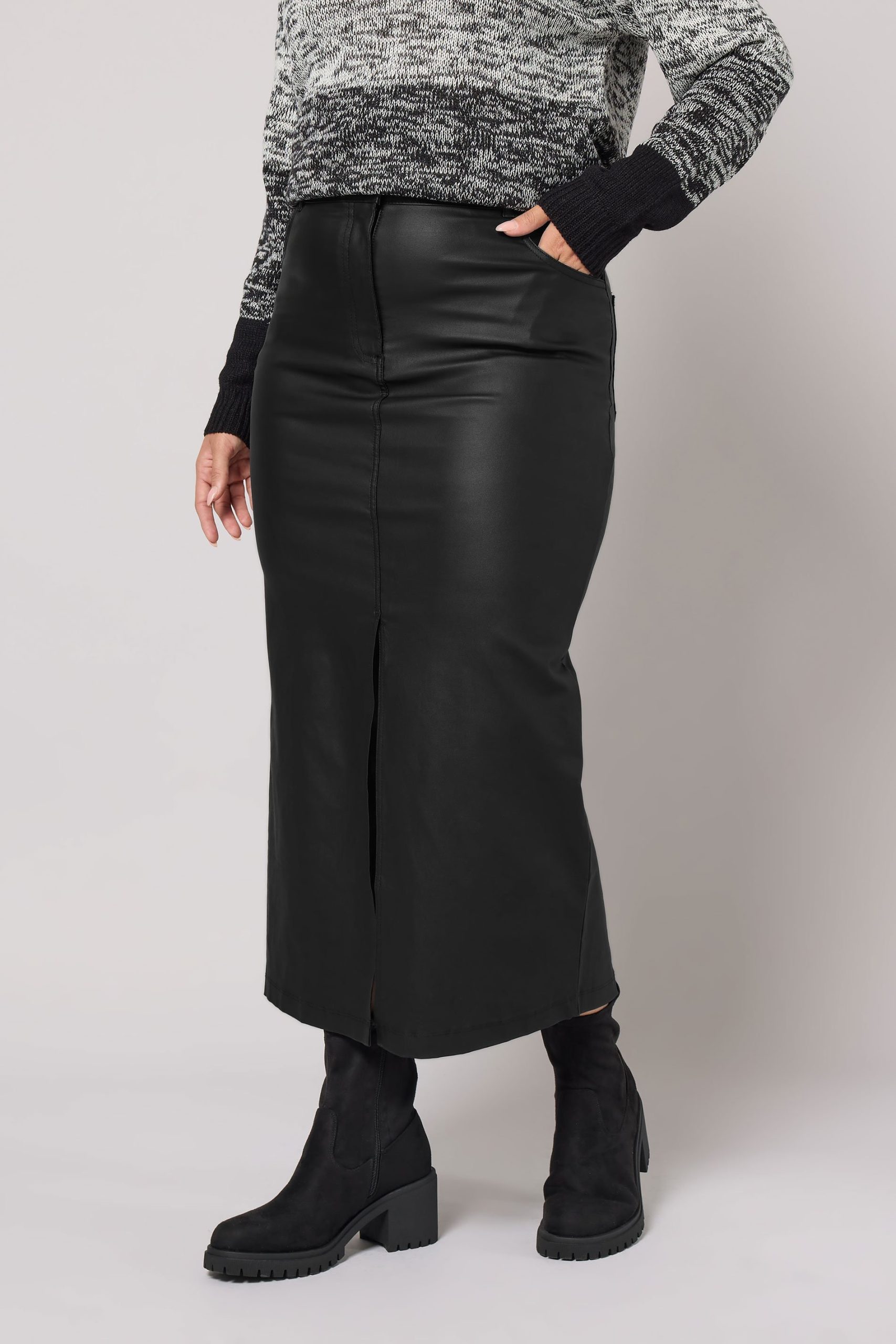 Yours Midaxirok Met Coating En Splitdetail Aan De Voorkant In Zwart Size 58-60